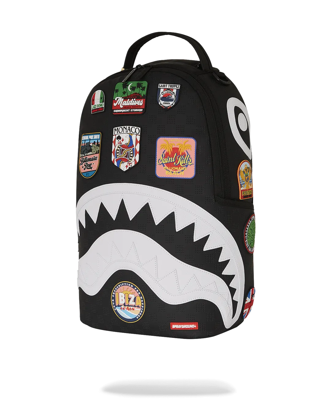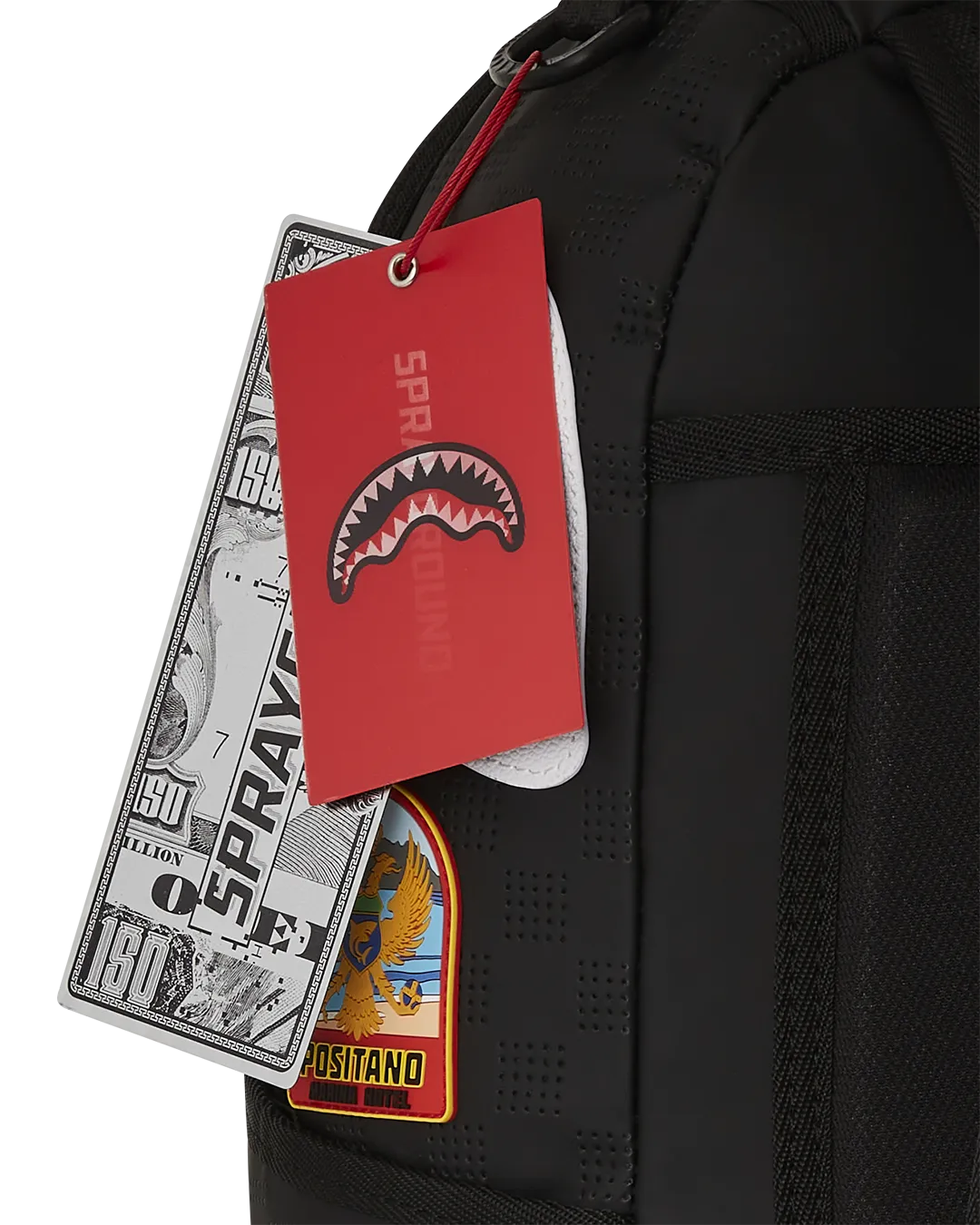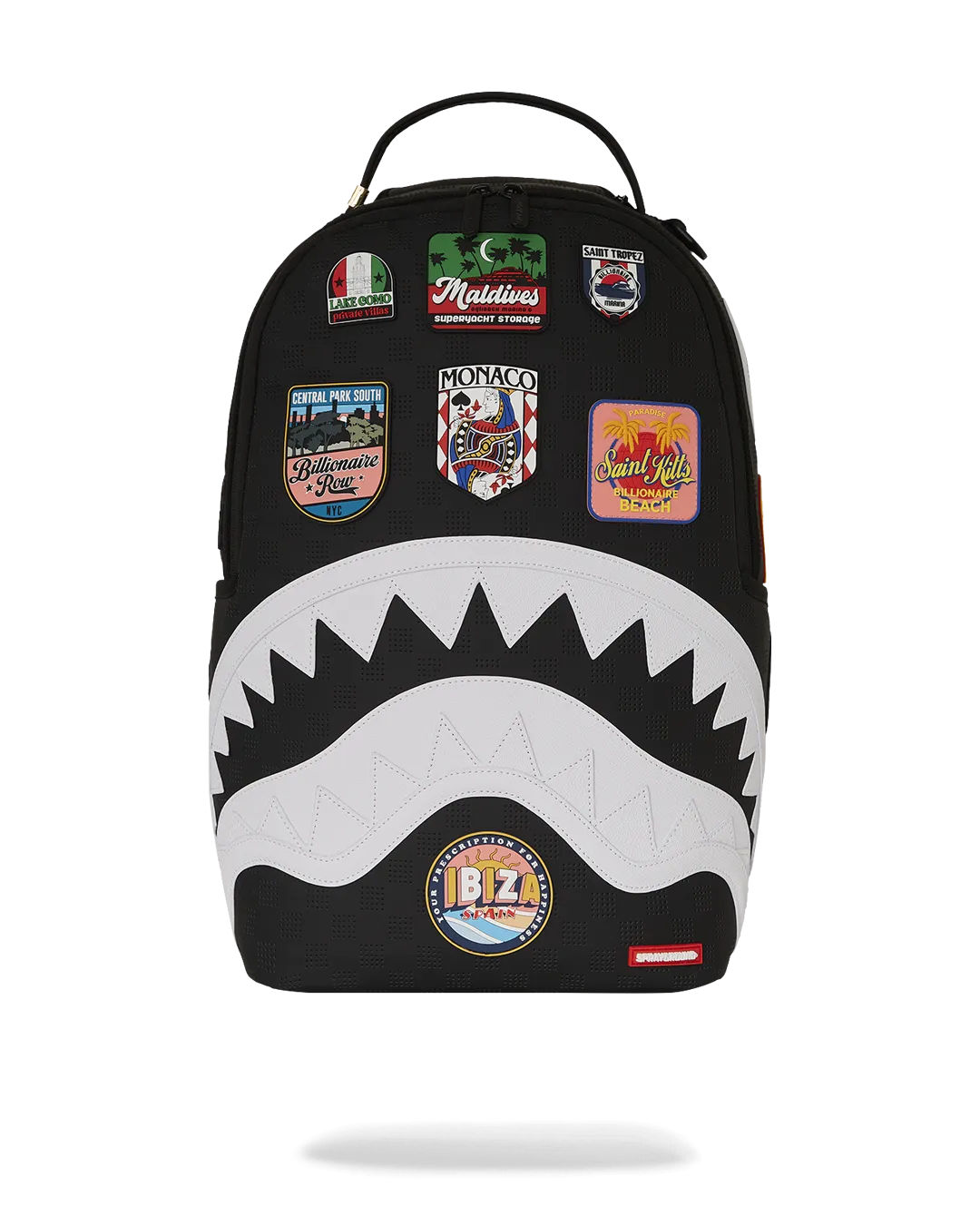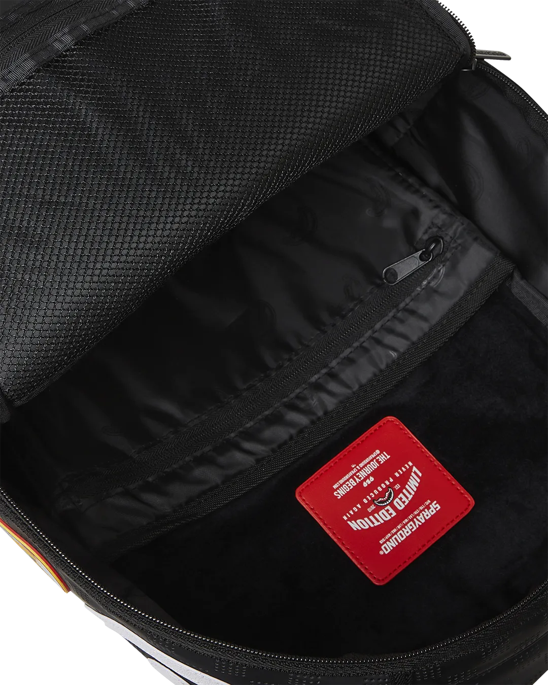 Dimensions: 18″ x 6″ x 11.5″ ? Front zipper pocket ? Side pockets ? Zippered Stash pocket ? Separate velour sunglass compartment ? Ergonomic mesh back padding ? Adjustable Straps for custom sizing ? Gold zippers with metal hardware ? Metal “Sprayground Authentic” badge ? Slide through back sleeve connects to carry-on luggage to free your hands