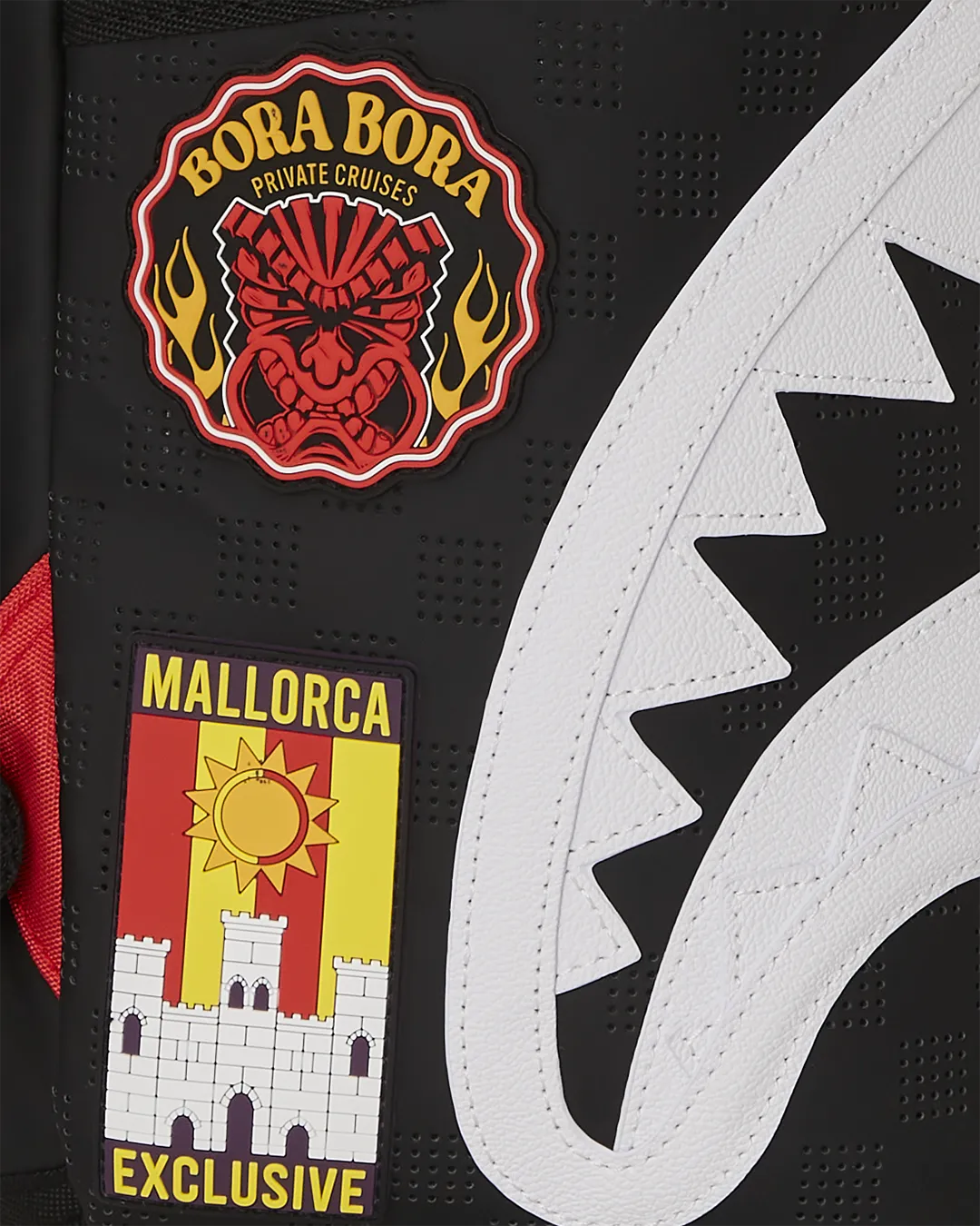 Perforated PVC fabric with rubber patches and rubber shark mouth