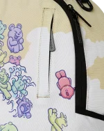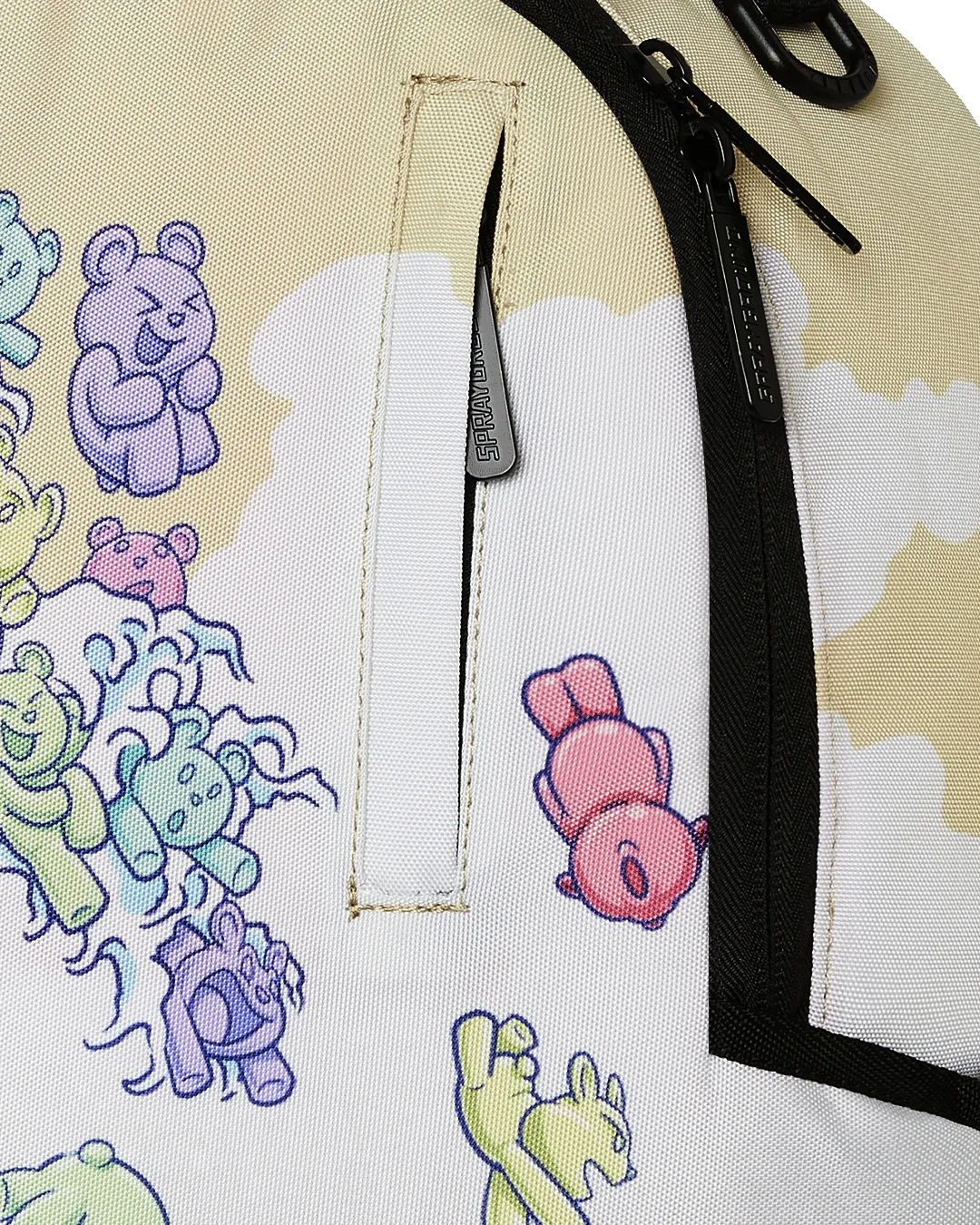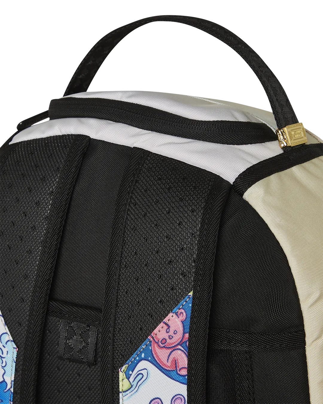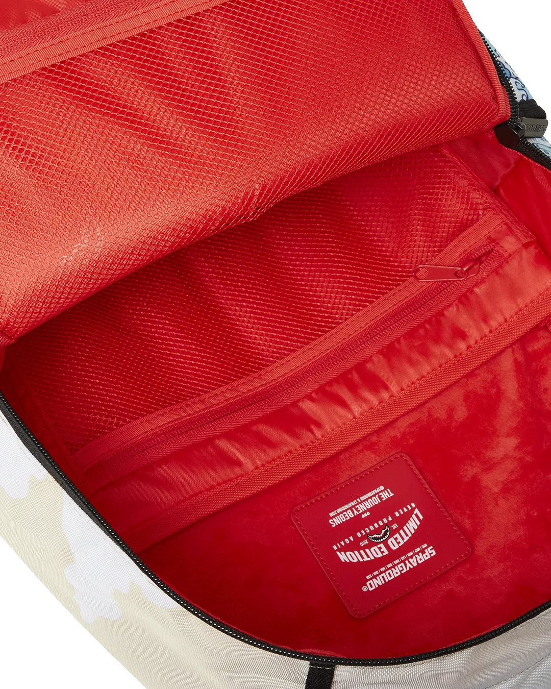 Dimensions: 18″ x 6″ x 11.5″ ? Front zipper pocket ? Side pockets ? Zippered Stash pocket ? Separate velour sunglass compartment ? Ergonomic mesh back padding ? Adjustable Straps for custom sizing ? Gold zippers with metal hardware ? Metal “Sprayground Authentic” badge ? Slide through back sleeve connects to carry-on luggage to free your hands