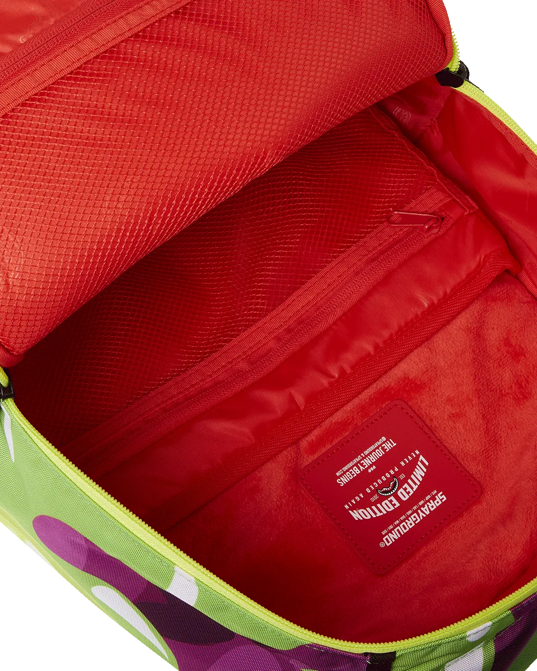 Dimensions: 18″ x 6″ x 11.5″ ? Front zipper pocket ? Side pockets ? Zippered Stash pocket ? Separate velour sunglass compartment ? Ergonomic mesh back padding ? Adjustable Straps for custom sizing ? Gold zippers with metal hardware ? Metal “Sprayground Authentic” badge ? Slide through back sleeve connects to carry-on luggage to free your hands