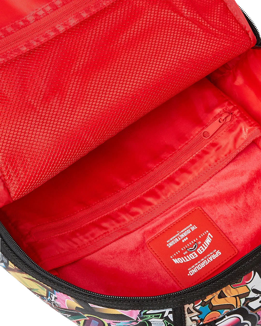 Dimensions: 18″ x 6″ x 11.5″ ? Front zipper pocket ? Side pockets ? Zippered Stash pocket ? Separate velour sunglass compartment ? Ergonomic mesh back padding ? Adjustable Straps for custom sizing ? Gold zippers with metal hardware ? Metal “Sprayground Authentic” badge ? Slide through back sleeve connects to carry-on luggage to free your hands