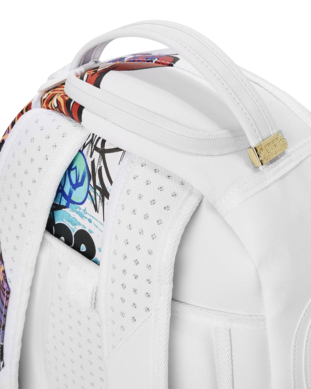 Dimensions: 18″ x 6″ x 11.5″ ? Front zipper pocket ? Side pockets ? Zippered Stash pocket ? Separate velour sunglass compartment ? Ergonomic mesh back padding ? Adjustable Straps for custom sizing ? Gold zippers with metal hardware ? Metal “Sprayground Authentic” badge ? Slide through back sleeve connects to carry-on luggage to free your hands