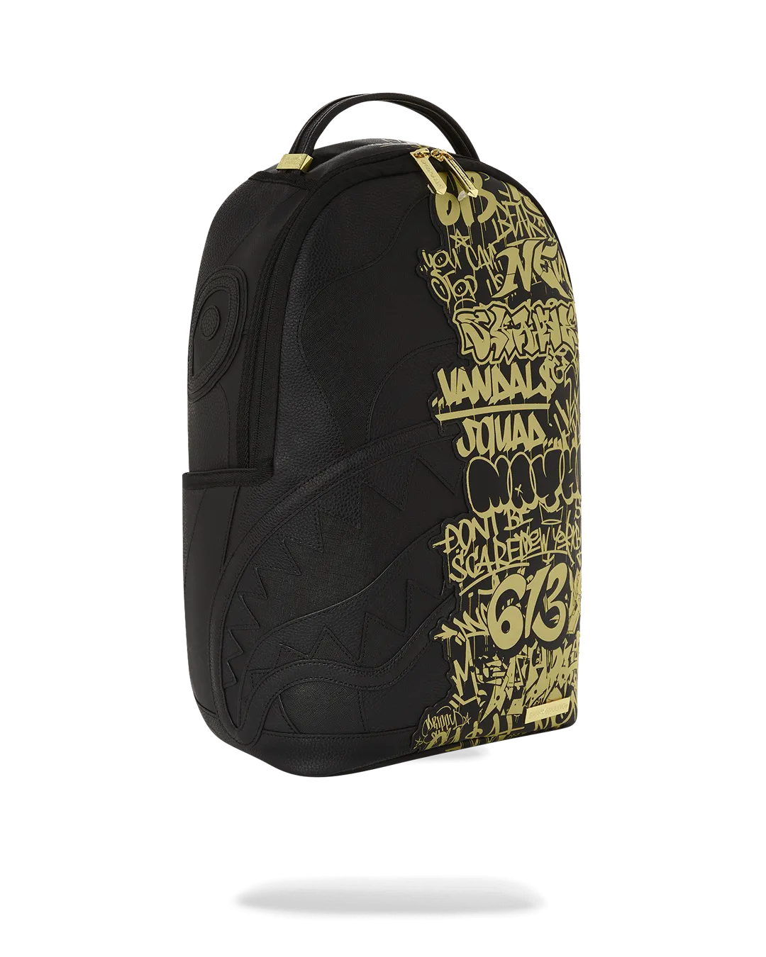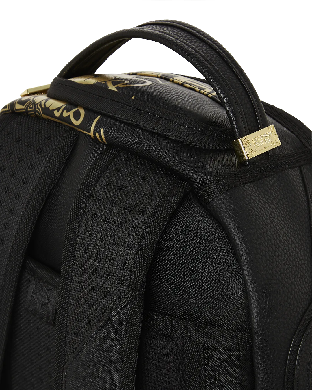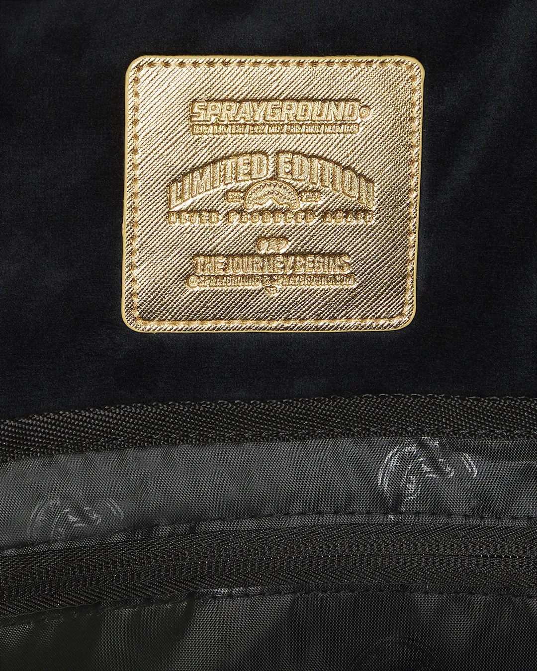 Dimensions: 18″ x 6″ x 11.5″ ? Front zipper pocket ? Side pockets ? Zippered Stash pocket ? Separate velour sunglass compartment ? Ergonomic mesh back padding ? Adjustable Straps for custom sizing ? Gold zippers with metal hardware ? Metal “Sprayground Authentic” badge ? Slide through back sleeve connects to carry-on luggage to free your hands