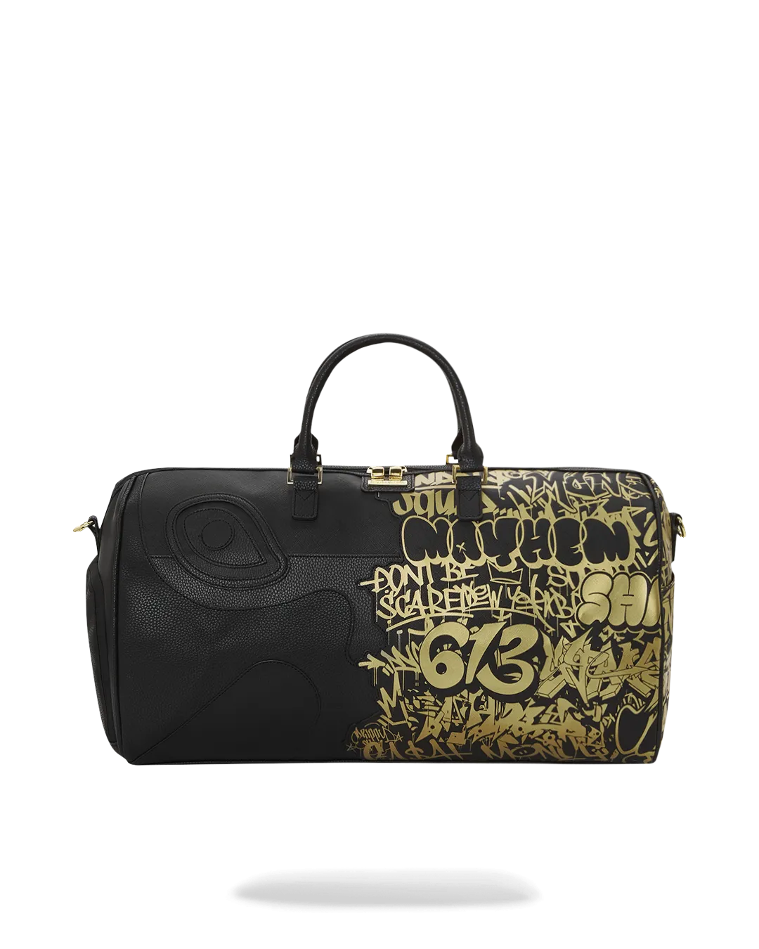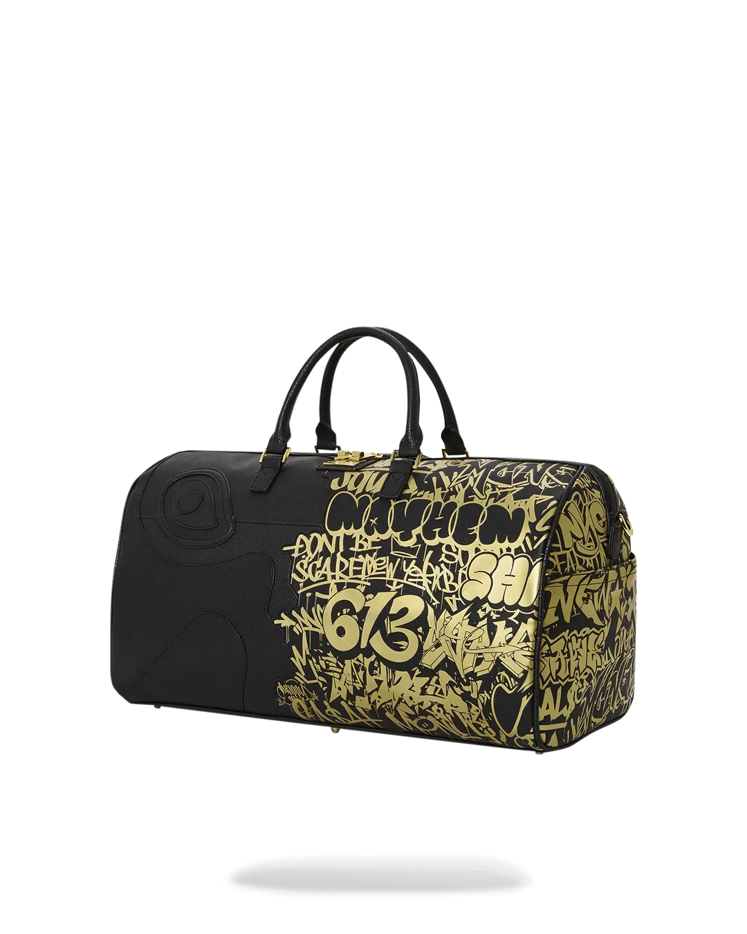 Dimensions: 20″ x 10″ x 10.75″ ? Metal zipper pocket??Back Zippers ?Zippered sneaker pocket ? gold zippers ? Adjustable Straps for custom sizing ?Metal Zippers with Metal Hardware ? bag of Sprayground money