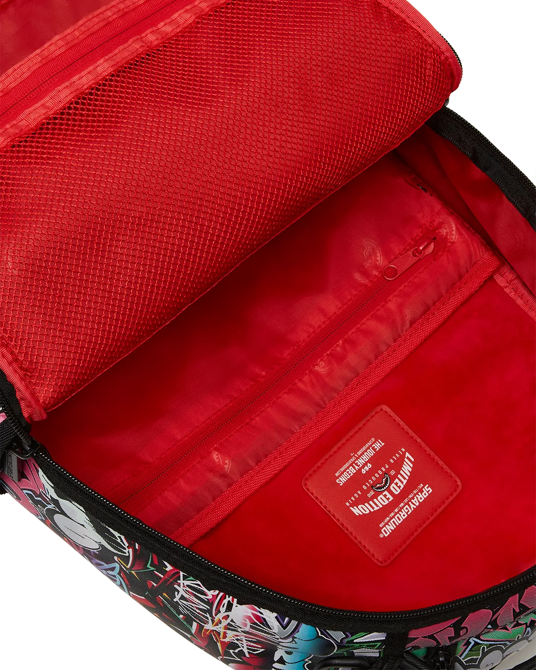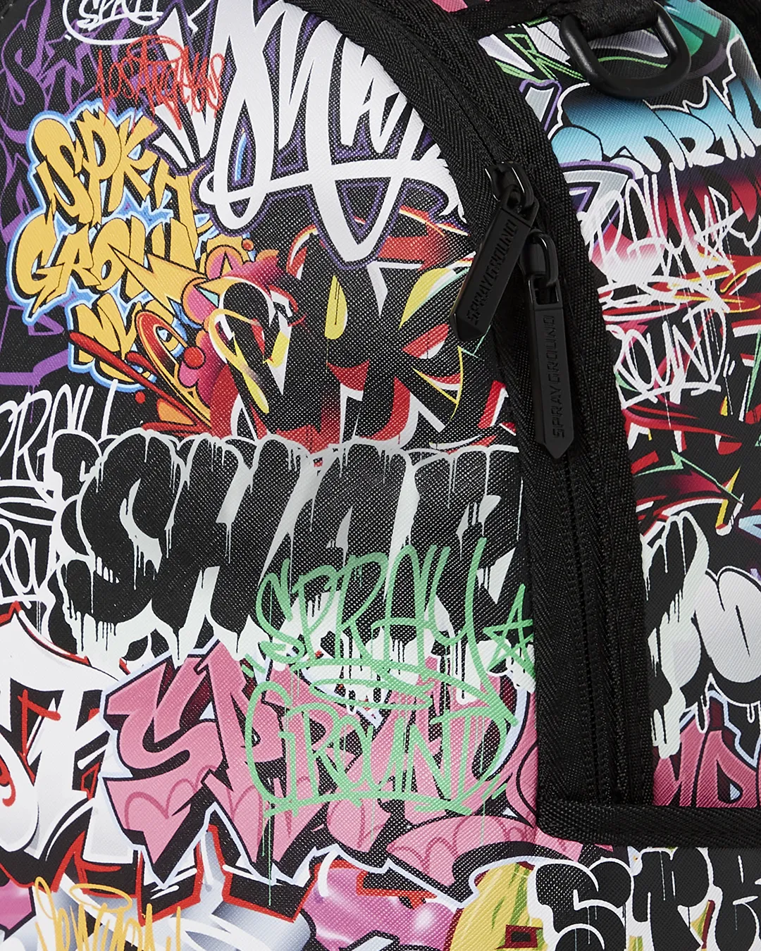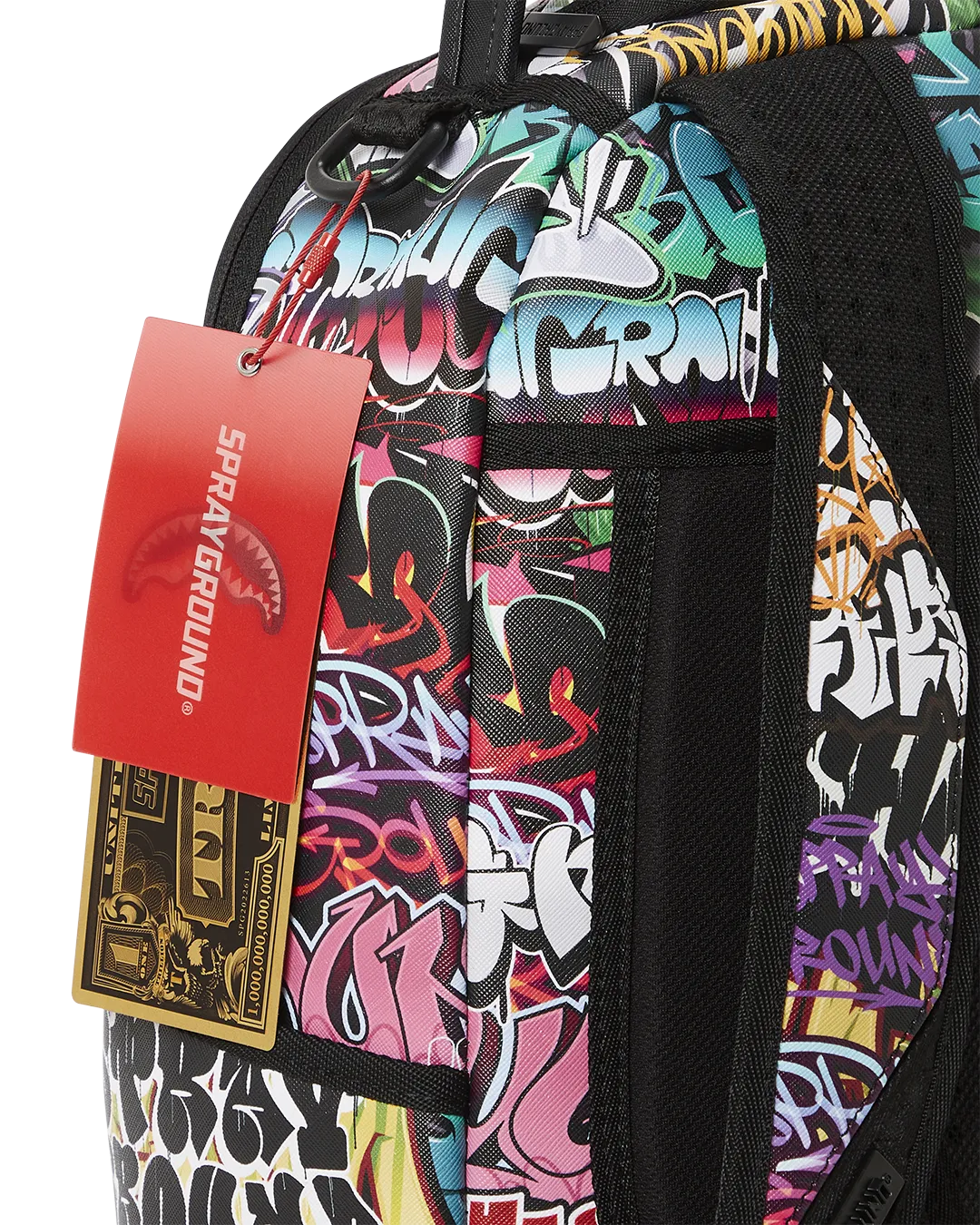 Dimensions: 18″ x 6″ x 11.5″ ? Front zipper pocket ? Side pockets ? Zippered Stash pocket ? Separate velour sunglass compartment ? Ergonomic mesh back padding ? Adjustable Straps for custom sizing ? Gold zippers with metal hardware ? Metal “Sprayground Authentic” badge ? Slide through back sleeve connects to carry-on luggage to free your hands