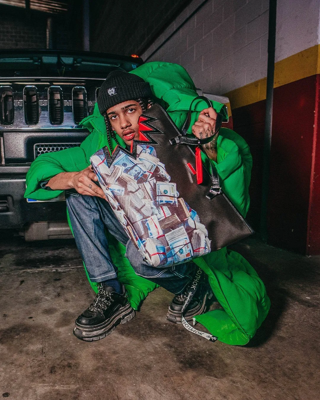 Dimensions: 19″ x 6.5″ x 11.5″ ? Top zipper opening ? Top double handle ? Sprayground keychain ? Gold zippers with metal hardware