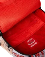 Dimensions: 18″ x 6″ x 11.5″ ? Front zipper pocket ? Side pockets ? Zippered Stash pocket ? Separate velour sunglass compartment ? Ergonomic mesh back padding ? Adjustable Straps for custom sizing ? Gold zippers with metal hardware ? Metal “Sprayground Authentic” badge ? Slide through back sleeve connects to carry-on luggage to free your hands