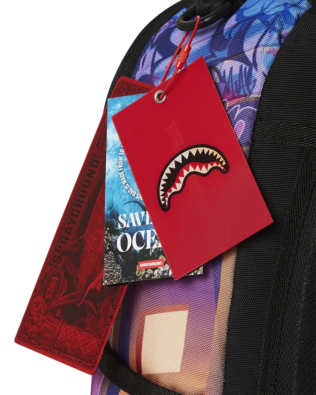 Dimensions: 18″ x 6″ x 11.5″ ? Front zipper pocket ? Side pockets ? Zippered Stash pocket ? Separate velour sunglass compartment ? Ergonomic mesh back padding ? Adjustable Straps for custom sizing ? Gold zippers with metal hardware ? Metal “Sprayground Authentic” badge ? Slide through back sleeve connects to carry-on luggage to free your hands