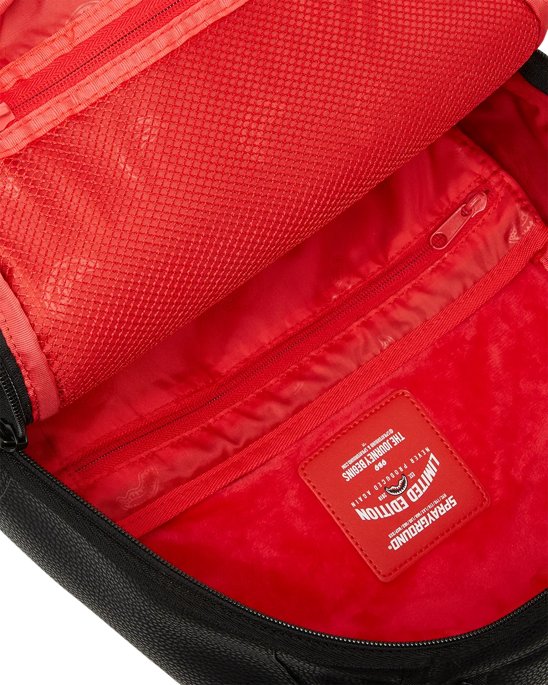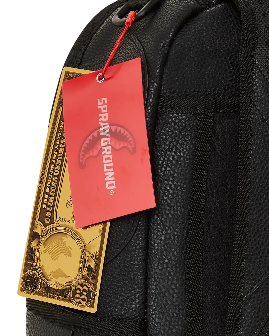 Dimensions: 18″ x 6″ x 11.5″ ? Front zipper pocket ? Side pockets ? Zippered Stash pocket ? Separate velour sunglass compartment ? Ergonomic mesh back padding ? Adjustable Straps for custom sizing ? Gold zippers with metal hardware ? Metal “Sprayground Authentic” badge ? Slide through back sleeve connects to carry-on luggage to free your hands