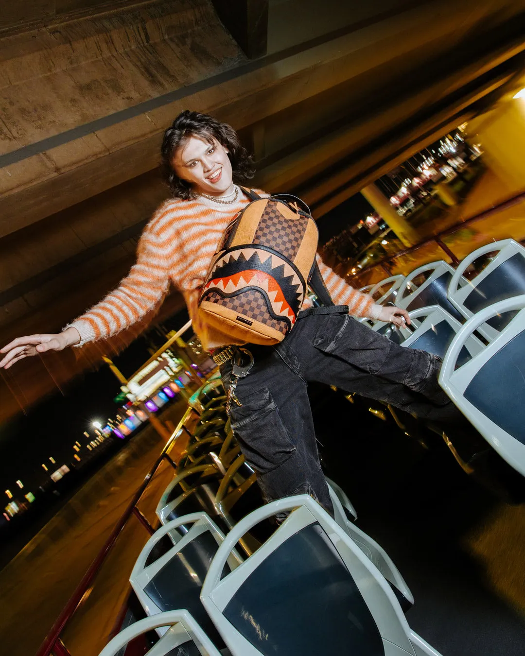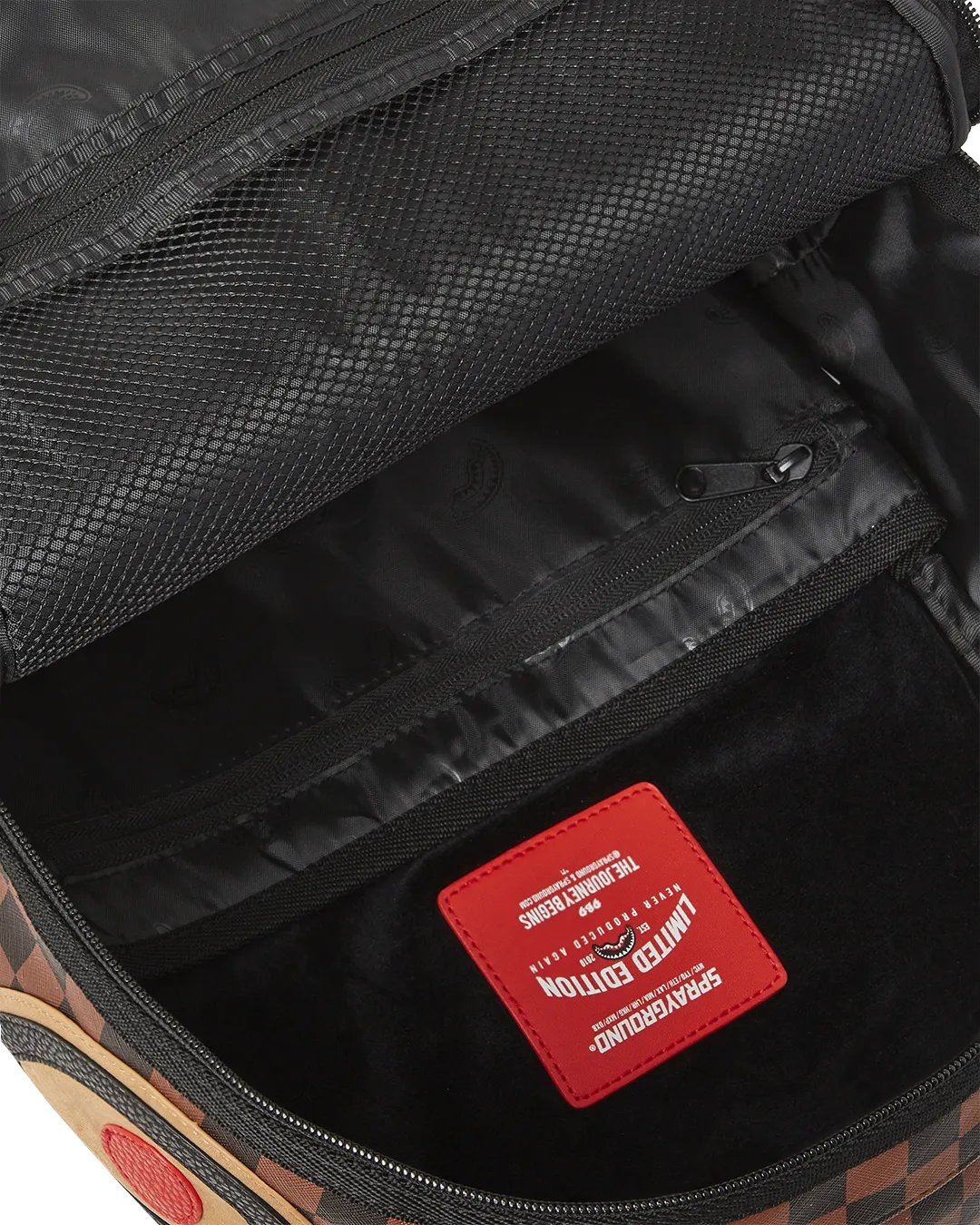 Dimensions: 18″ x 6″ x 11.5″ ? Front zipper pocket ? Side pockets ? Zippered Stash pocket ? Separate velour sunglass compartment ? Ergonomic mesh back padding ? Adjustable Straps for custom sizing ? Gold zippers with metal hardware ? Metal “Sprayground Authentic” badge ? Slide through back sleeve connects to carry-on luggage to free your hands