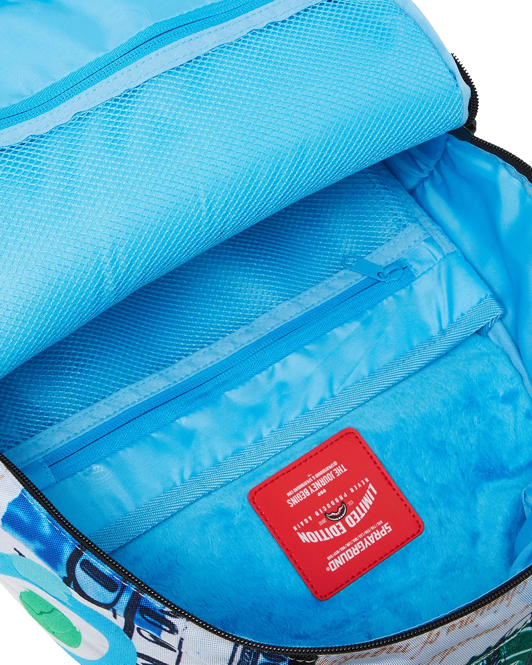 Dimensions: 18″ x 6″ x 11.5″ ? Front zipper pocket ? Side pockets ? Zippered Stash pocket ? Separate velour sunglass compartment ? Ergonomic mesh back padding ? Adjustable Straps for custom sizing ? Gold zippers with metal hardware ? Metal “Sprayground Authentic” badge ? Slide through back sleeve connects to carry-on luggage to free your hands