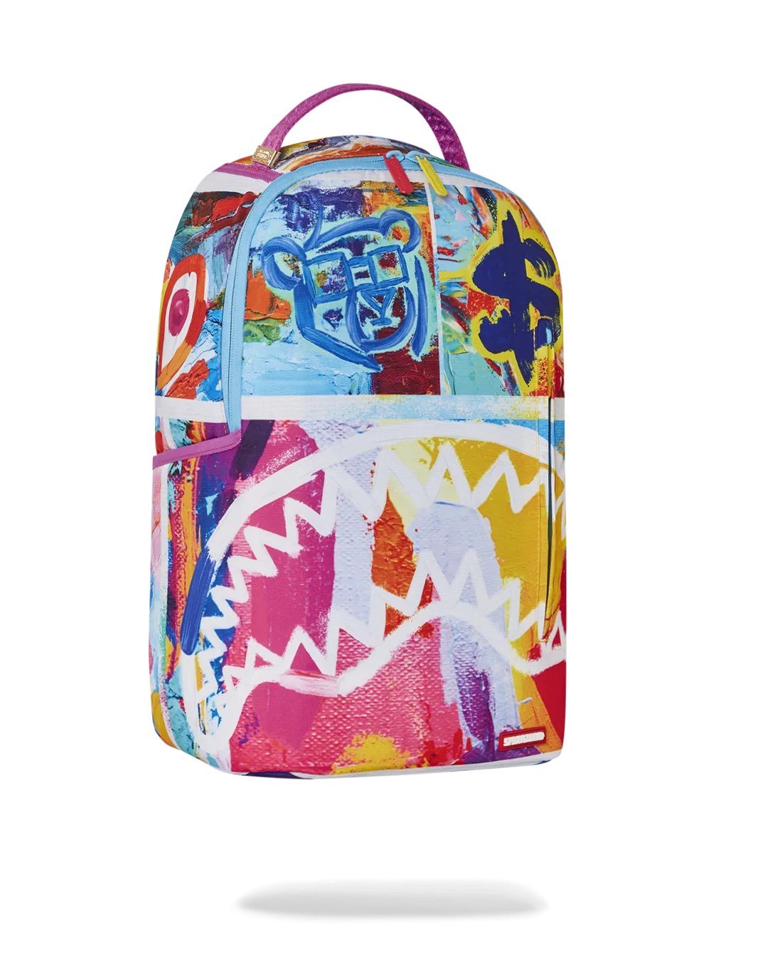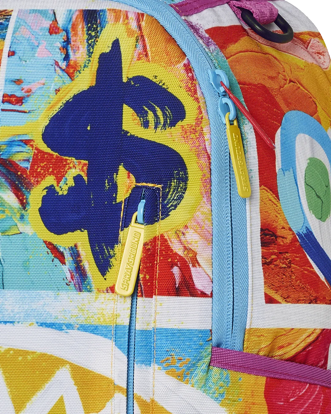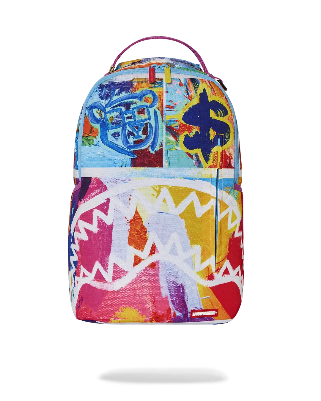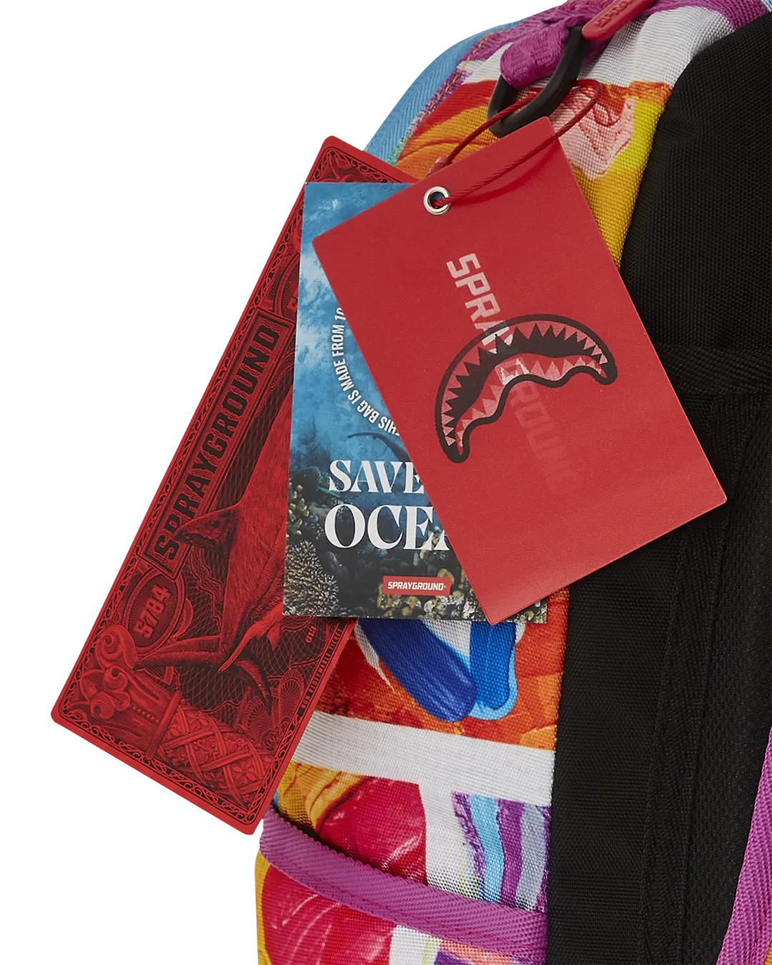 Dimensions: 18″ x 6″ x 11.5″ ? Front zipper pocket ? Side pockets ? Zippered Stash pocket ? Separate velour sunglass compartment ? Ergonomic mesh back padding ? Adjustable Straps for custom sizing ? Gold zippers with metal hardware ? Metal “Sprayground Authentic” badge ? Slide through back sleeve connects to carry-on luggage to free your hands