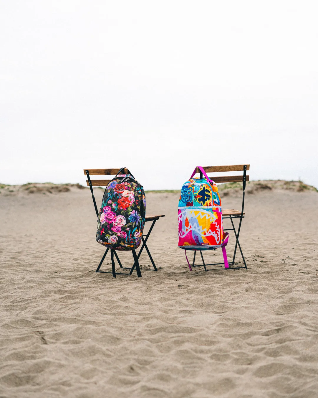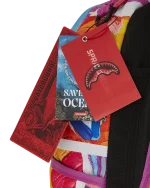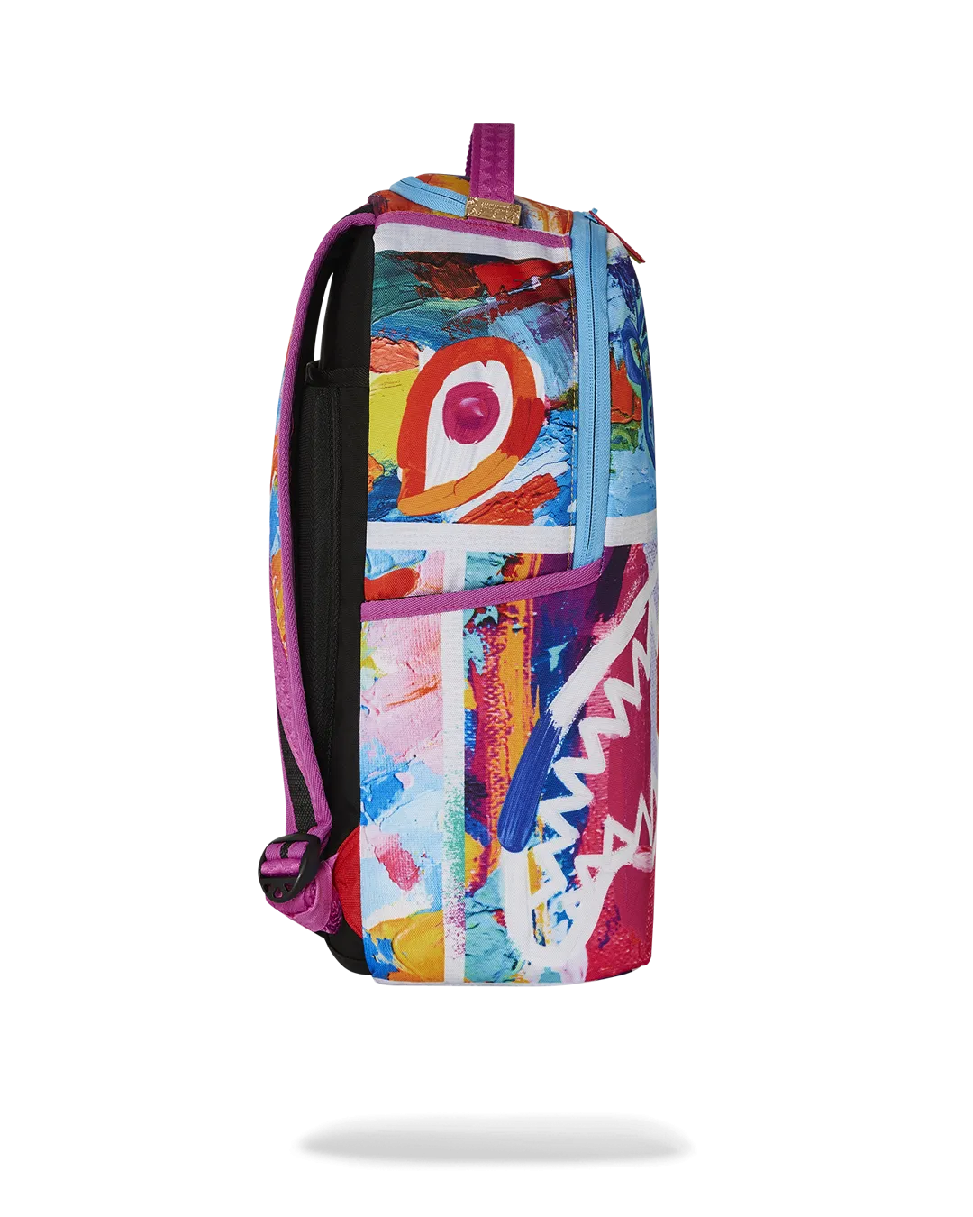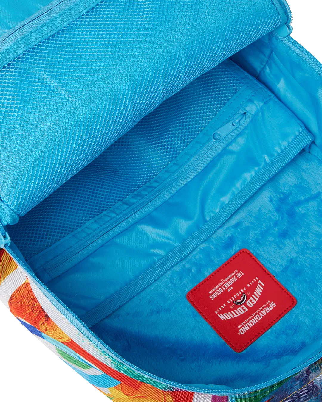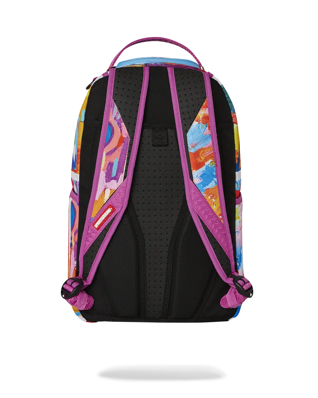 Dimensions: 18″ x 6″ x 11.5″ ? Front zipper pocket ? Side pockets ? Zippered Stash pocket ? Separate velour sunglass compartment ? Ergonomic mesh back padding ? Adjustable Straps for custom sizing ? Gold zippers with metal hardware ? Metal “Sprayground Authentic” badge ? Slide through back sleeve connects to carry-on luggage to free your hands
