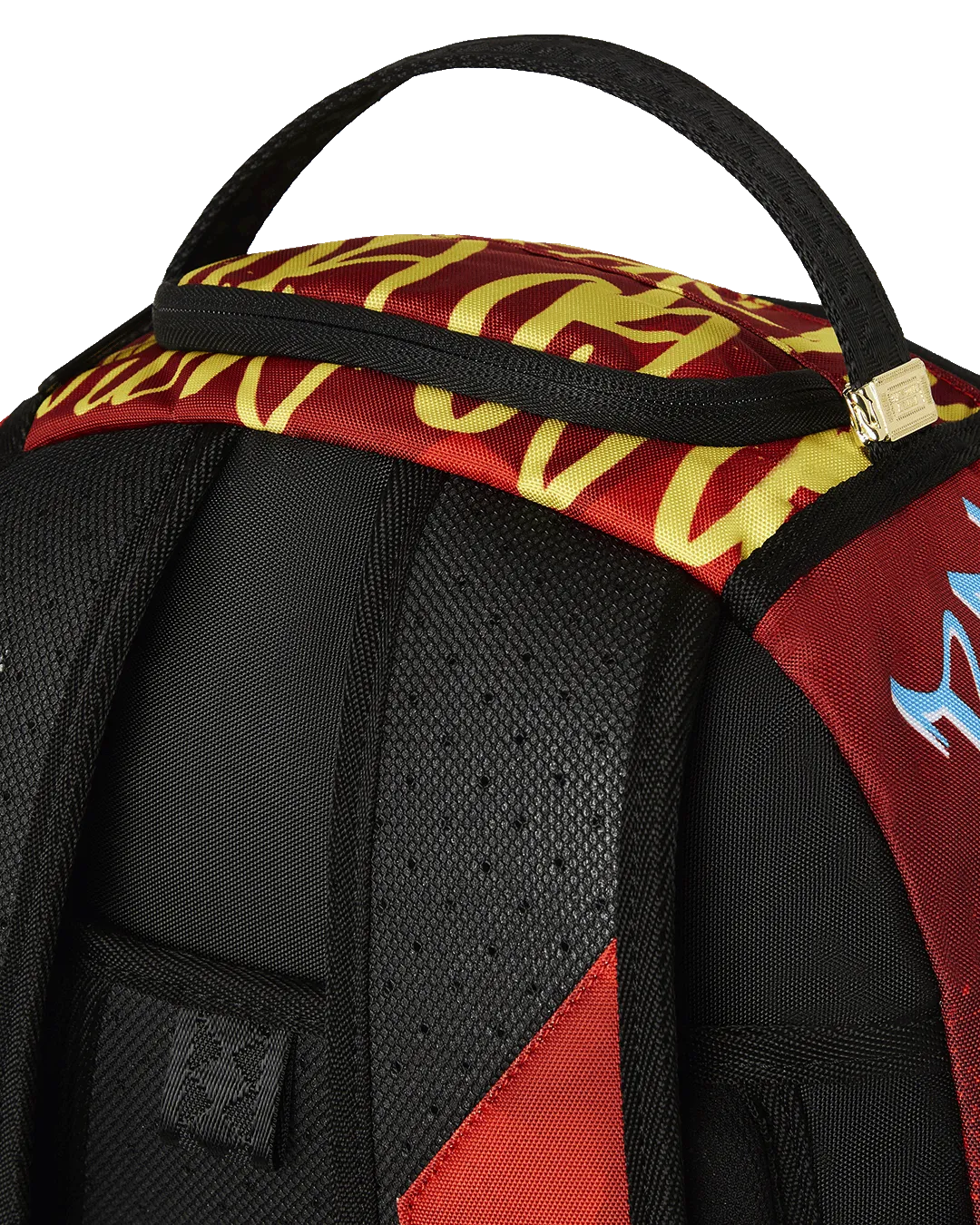 Dimensions: 18″ x 6″ x 11.5″ ? Front zipper pocket ? Side pockets ? Zippered Stash pocket ? Separate velour sunglass compartment ? Ergonomic mesh back padding ? Adjustable Straps for custom sizing ? Gold zippers with metal hardware ? Metal “Sprayground Authentic” badge ? Slide through back sleeve connects to carry-on luggage to free your hands