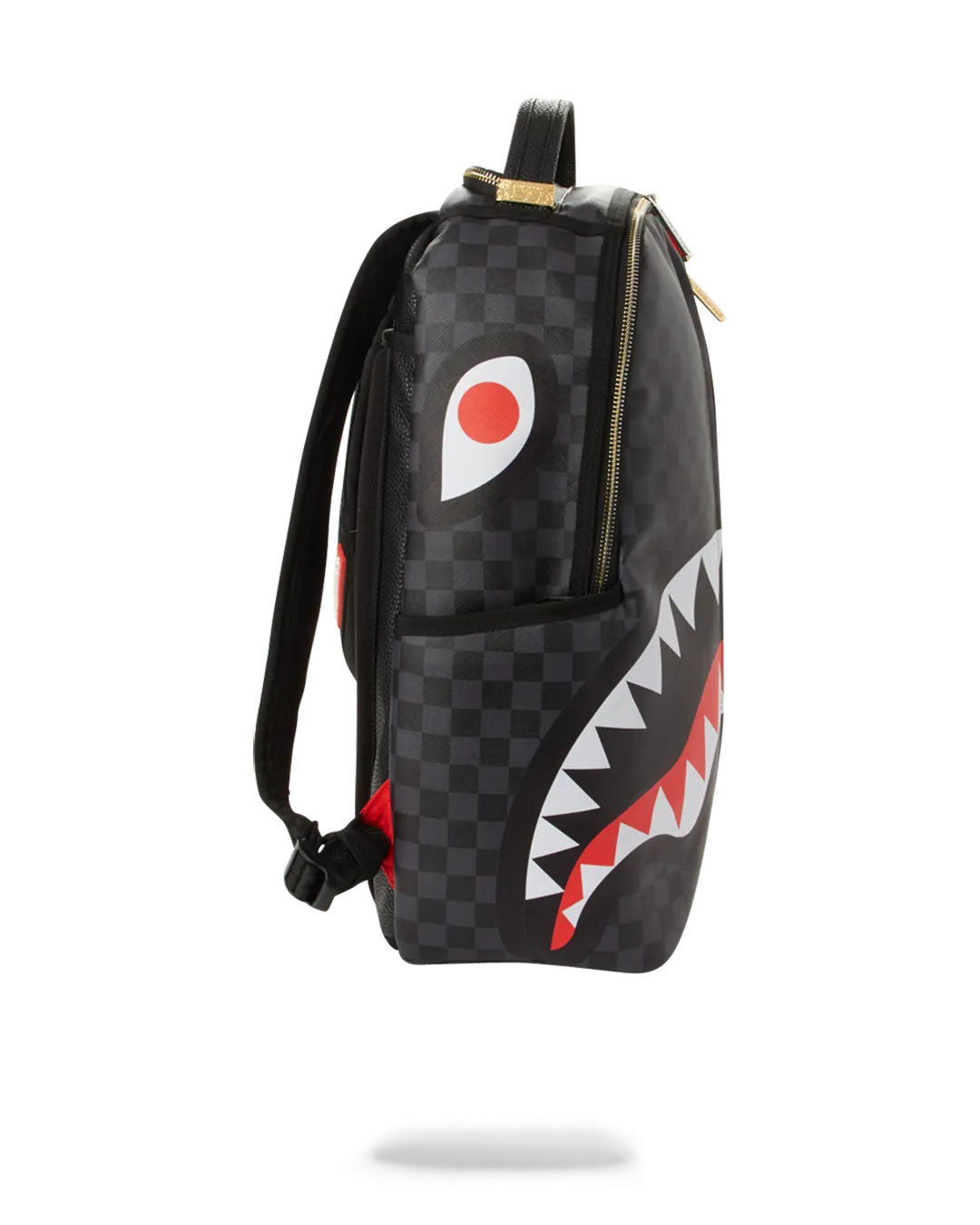 Dimensions: 18″ x 6″ x 11.5″ ? Front zipper pocket ? Side pockets ? Zippered Stash pocket ? Separate velour sunglass compartment ? Ergonomic mesh back padding ? Adjustable Straps for custom sizing ? Gold and silver zippers with metal hardware ? Metal “Sprayground Authentic” badge ? Slide through back sleeve connects to carry-on luggage to free your hands