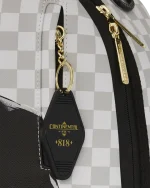 Dimensions: 18″ x 6″ x 11.5″ ? Front zipper pocket ? Side pockets ? Zippered Stash pocket ? Separate velour sunglass compartment ? Ergonomic mesh back padding ? Adjustable Straps for custom sizing ? Gold zippers with metal hardware ? Metal “Sprayground Authentic” badge ? Slide through back sleeve connects to carry-on luggage to free your hands