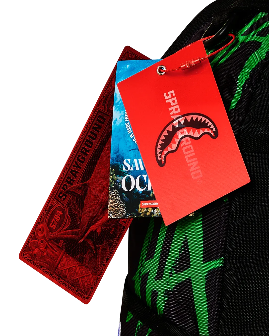 Dimensions: 18″ x 6″ x 11.5″ ? Front zipper pocket ? Side pockets ? Zippered Stash pocket ? Separate velour sunglass compartment ? Ergonomic mesh back padding ? Adjustable Straps for custom sizing ? Gold zippers with metal hardware ? Metal “Sprayground Authentic” badge ? Slide through back sleeve connects to carry-on luggage to free your hands