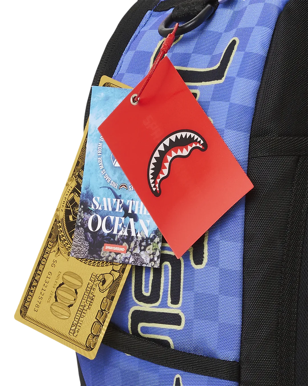 Dimensions: 18″ x 6″ x 11.5″ ? Front zipper pocket ? Side pockets ? Zippered Stash pocket ? Separate velour sunglass compartment ? Ergonomic mesh back padding ? Adjustable Straps for custom sizing ? Gold zippers with metal hardware ? Metal “Sprayground Authentic” badge ? Slide through back sleeve connects to carry-on luggage to free your hands