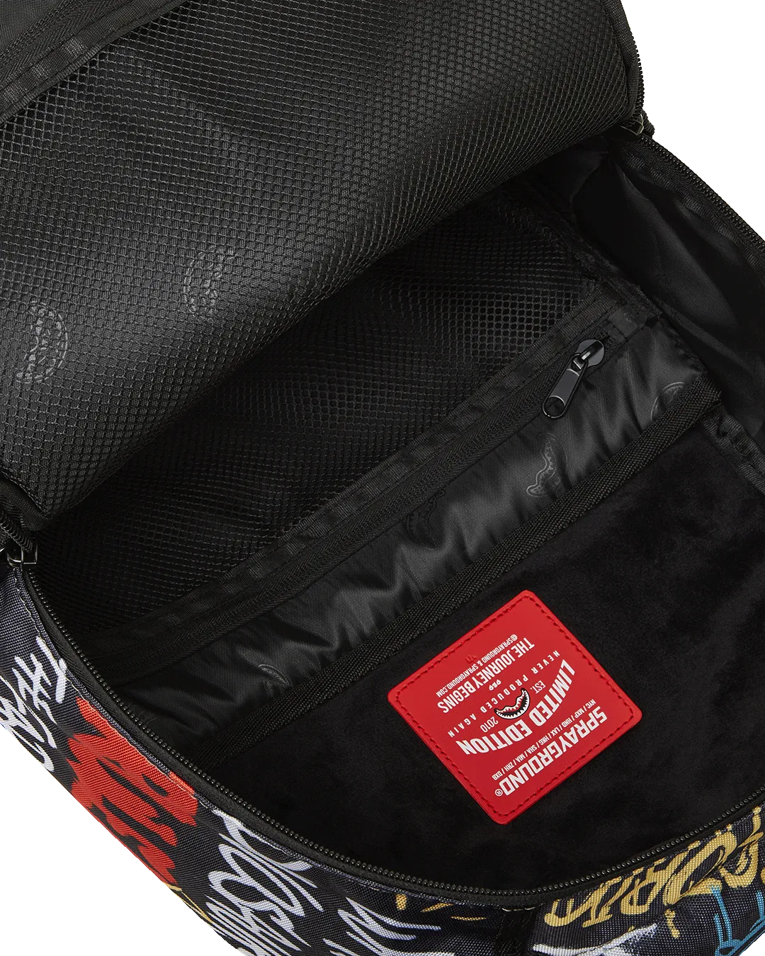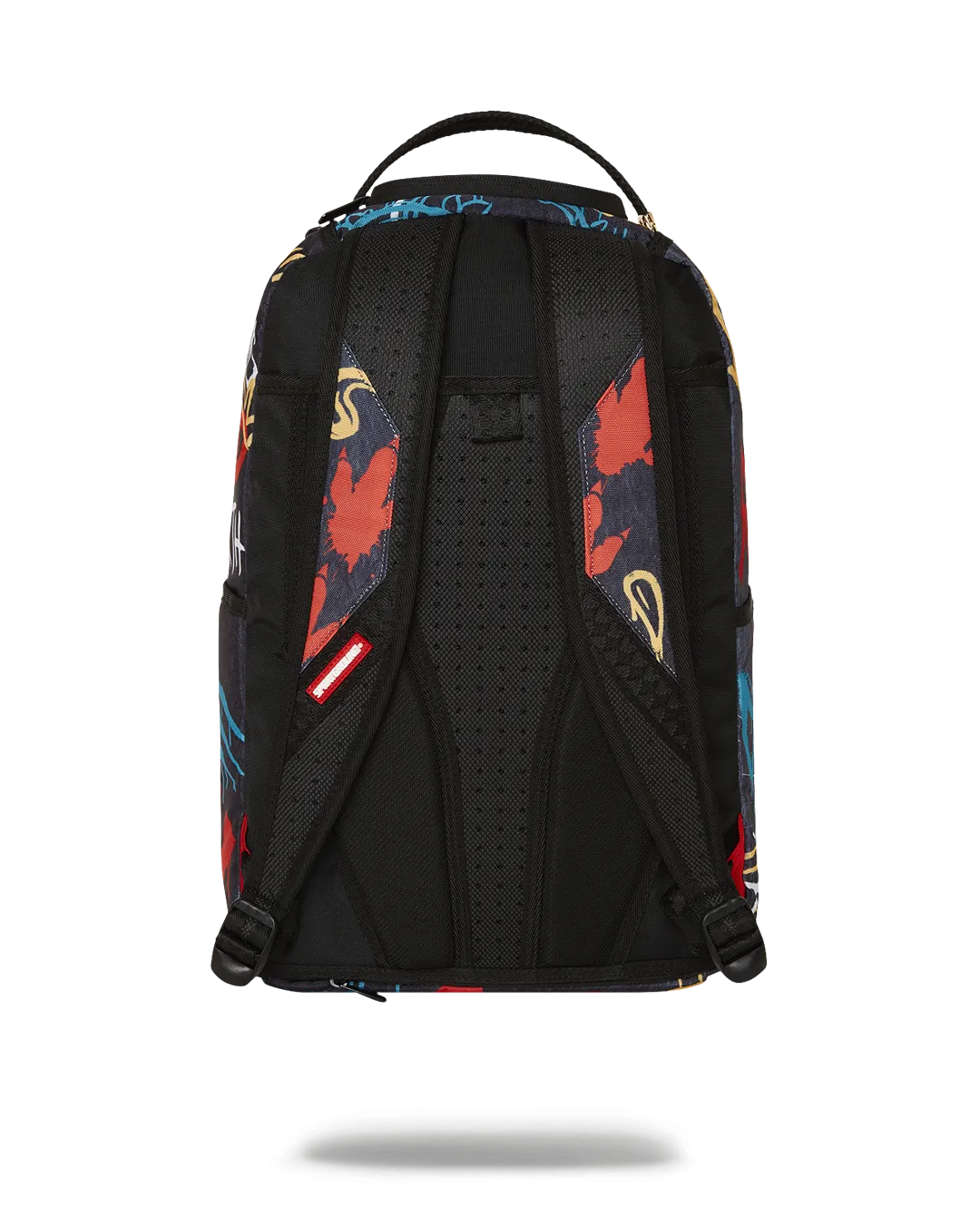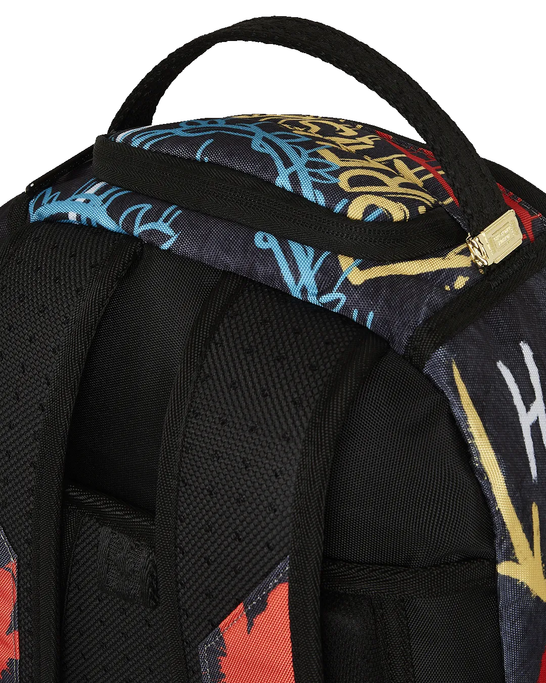 Dimensions: 18″ x 6″ x 11.5″ ? Front zipper pocket ? Side pockets ? Zippered Stash pocket ? Separate velour sunglass compartment ? Ergonomic mesh back padding ? Adjustable Straps for custom sizing ? Gold zippers with metal hardware ? Metal “Sprayground Authentic” badge ? Slide through back sleeve connects to carry-on luggage to free your hands