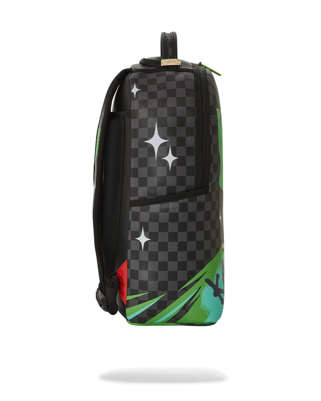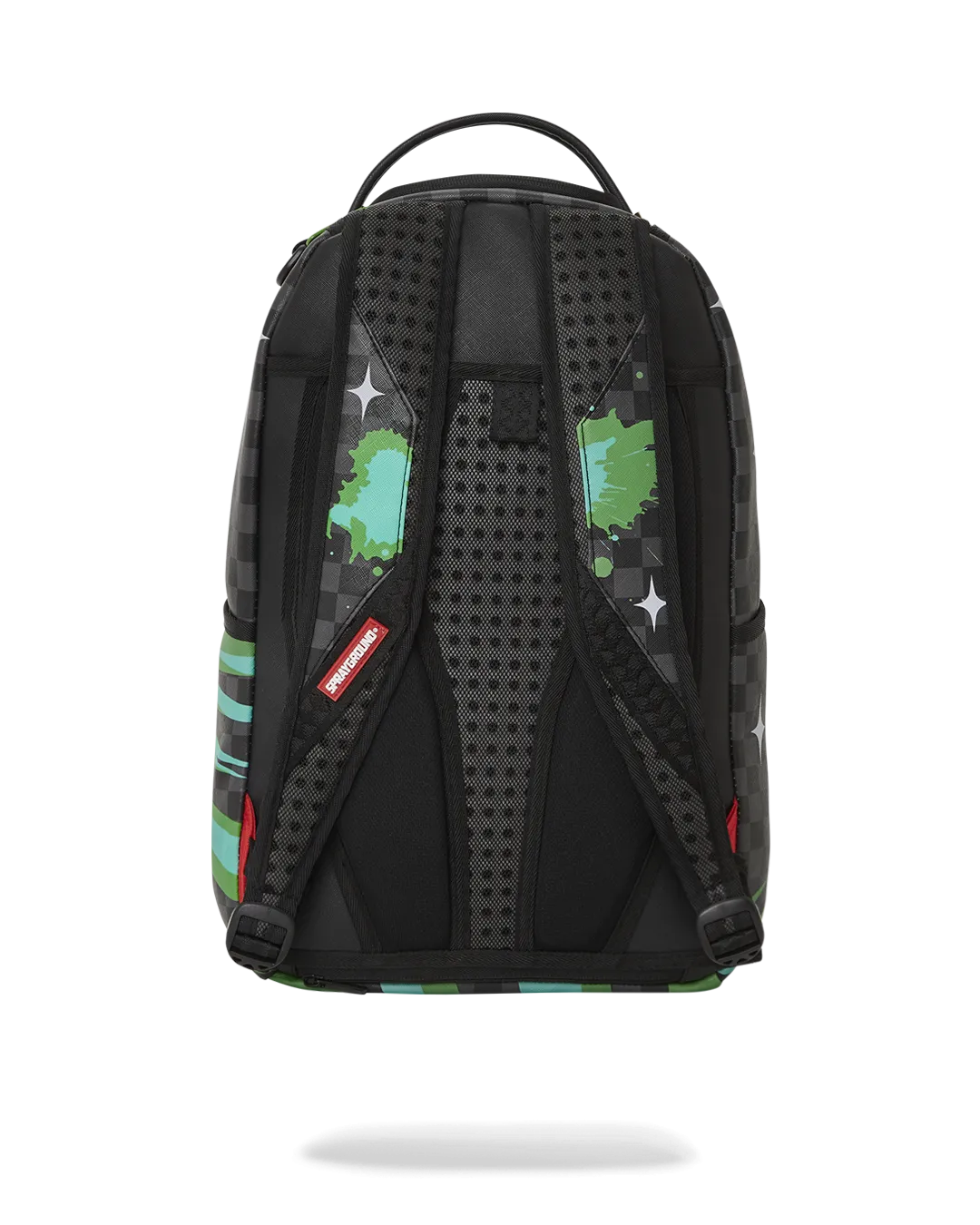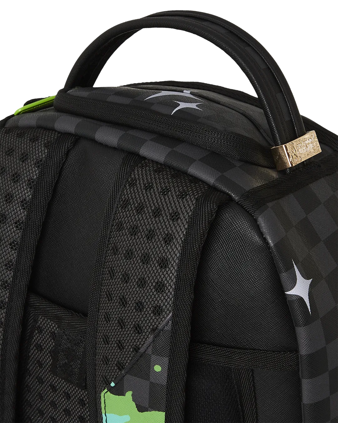 Dimensions: 18″ x 6″ x 11.5″ ? Front zipper pocket ? Side pockets ? Zippered Stash pocket ? Separate velour sunglass compartment ? Ergonomic mesh back padding ? Adjustable Straps for custom sizing ? Gold zippers with metal hardware ? Metal “Sprayground Authentic” badge ? Slide through back sleeve connects to carry-on luggage to free your hands