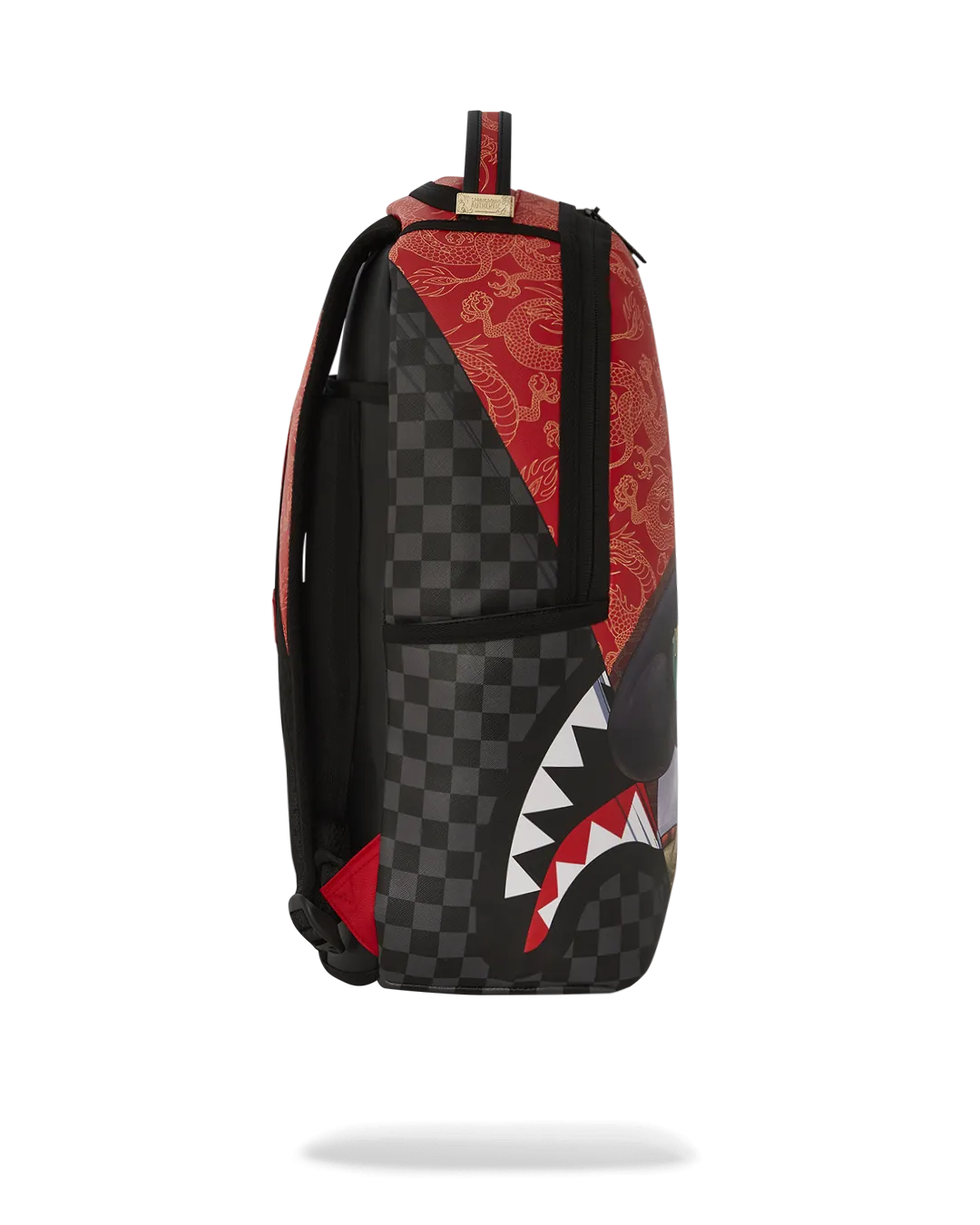 Dimensions: 18″ x 6″ x 11.5″ ? Front zipper pocket ? Side pockets ? Zippered Stash pocket ? Separate velour sunglass compartment ? Ergonomic mesh back padding ? Adjustable Straps for custom sizing ? Gold zippers with metal hardware ? Metal “Sprayground Authentic” badge ? Slide through back sleeve connects to carry-on luggage to free your hands