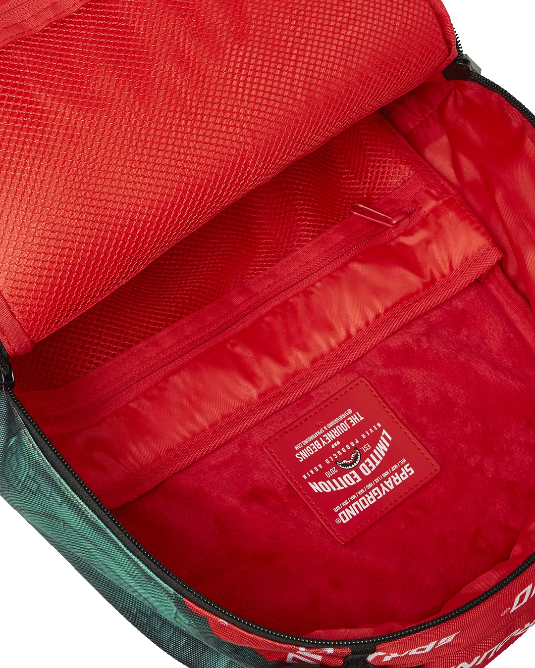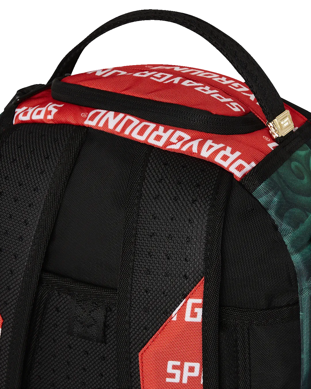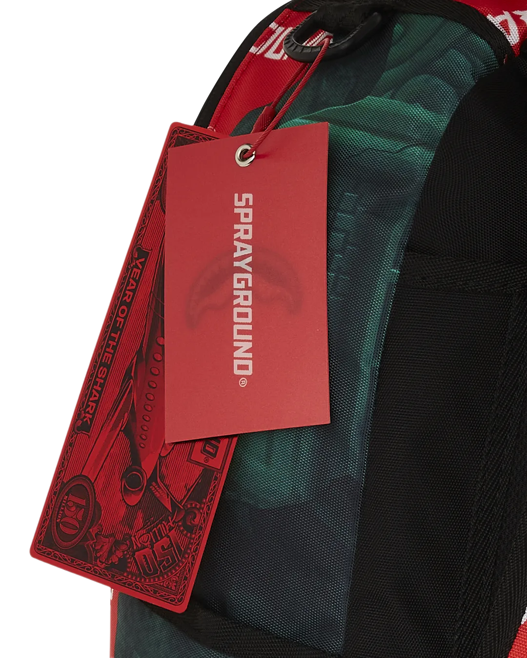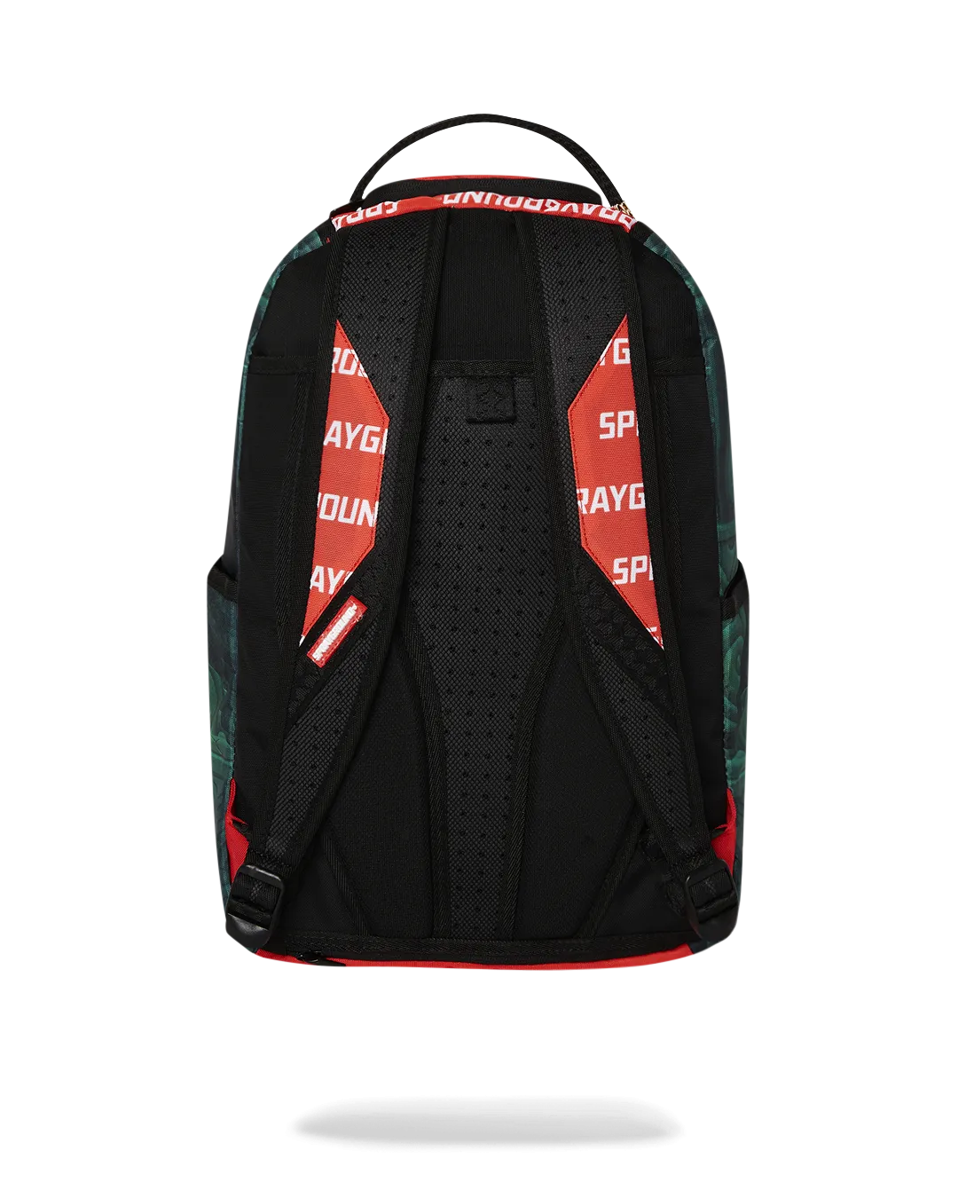 Dimensions: 18″ x 6″ x 11.5″ ? Front zipper pocket ? Side pockets ? Zippered Stash pocket ? Separate velour sunglass compartment ? Ergonomic mesh back padding ? Adjustable Straps for custom sizing ? Gold zippers with metal hardware ? Metal “Sprayground Authentic” badge ? Slide through back sleeve connects to carry-on luggage to free your hands