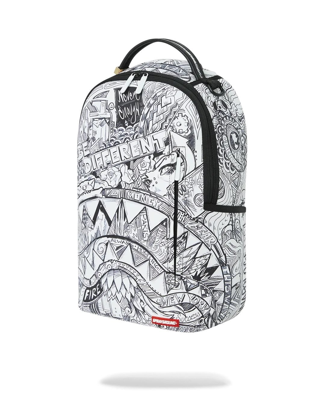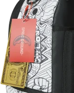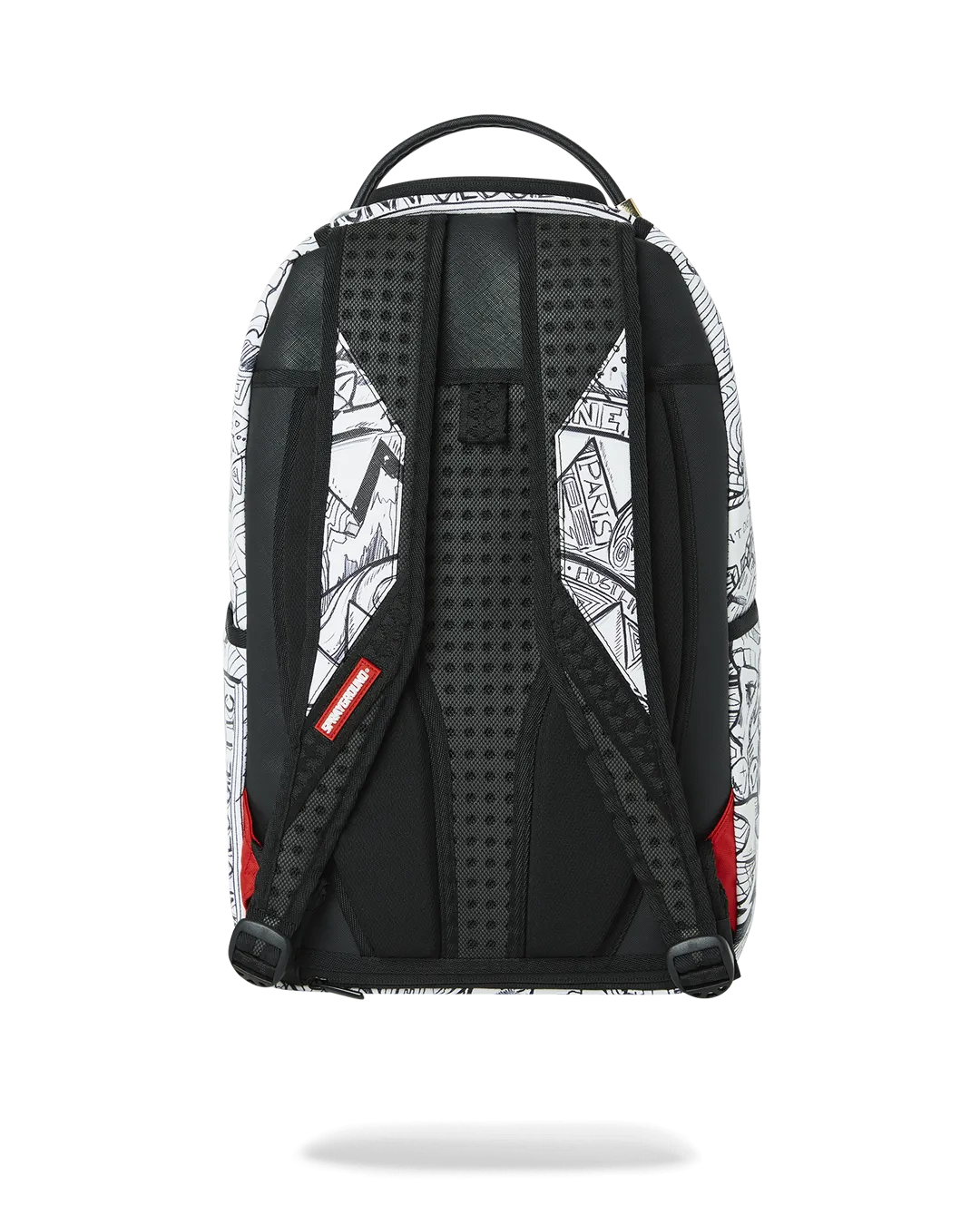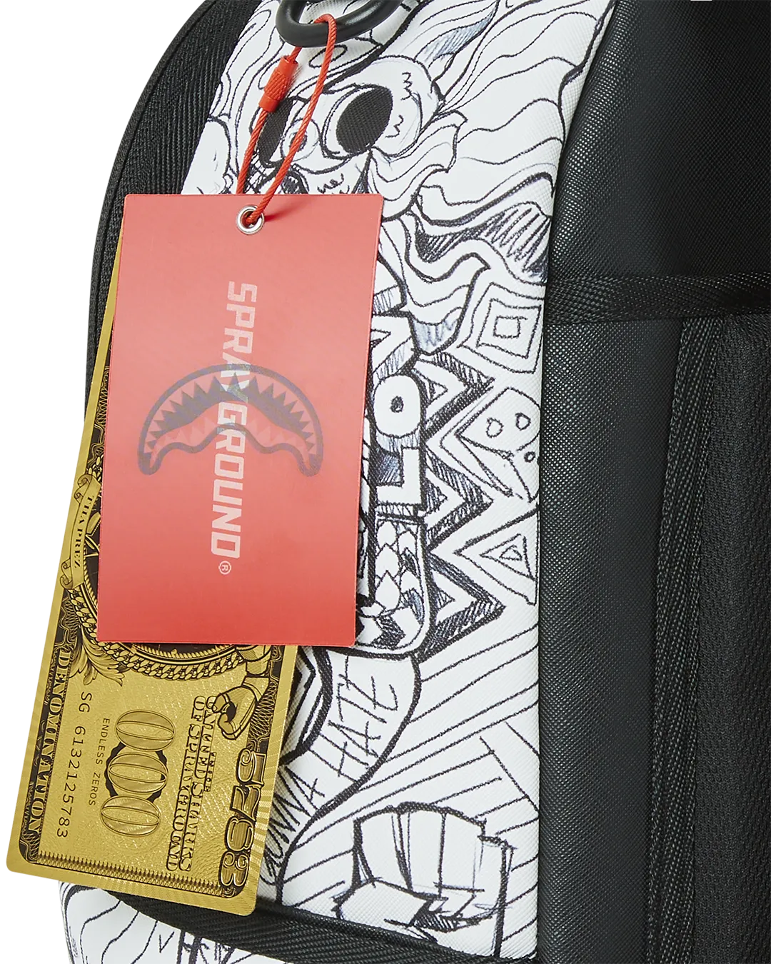 Dimensions: 18″ x 6″ x 11.5″ ? Front zipper pocket ? Side pockets ? Zippered Stash pocket ? Separate velour sunglass compartment ? Ergonomic mesh back padding ? Adjustable Straps for custom sizing ? Gold zippers with metal hardware ? Metal “Sprayground Authentic” badge ? Slide through back sleeve connects to carry-on luggage to free your hands