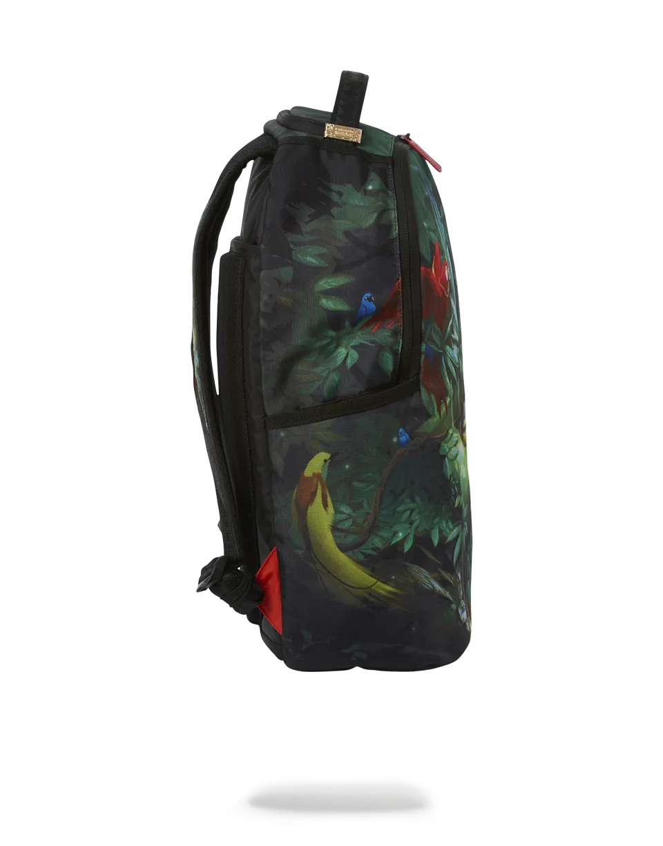Dimensions: 18″ x 6″ x 11.5″ ? Front zipper pocket ? Side pockets ? Zippered Stash pocket ? Separate velour sunglass compartment ? Ergonomic mesh back padding ? Adjustable Straps for custom sizing ? Red and gold zippers with metal hardware ? Metal “Sprayground Authentic” badge ? Slide through back sleeve connects to carry-on luggage to free your hands