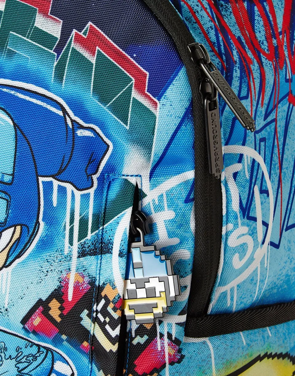Dimensions: 18″ x 6″ x 11.5″ ? Front zipper pocket ? Side pockets ? Zippered Stash pocket ? Ergonomic mesh back padding ? Adjustable Straps for custom sizing ? Nylon Zippers with Metal Hardware ? Metal “Sprayground Authentic” badge ? Slide through back sleeve connects to Carry on luggage to free your hands
