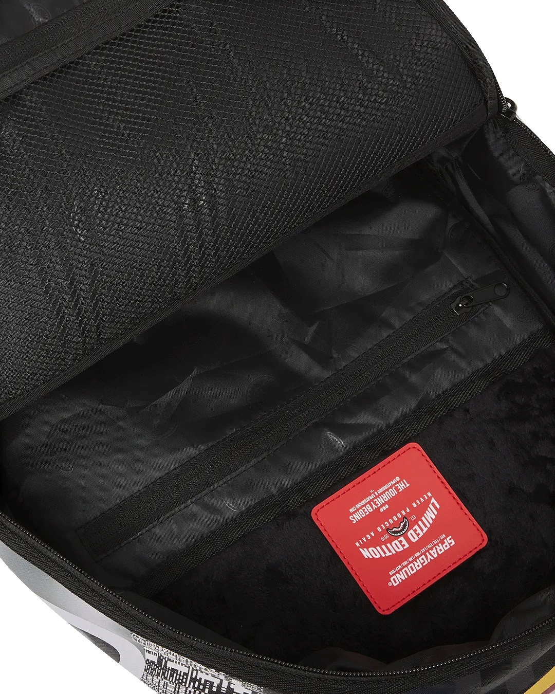 Dimensions: 18″ x 6″ x 11.5″ ? Front zipper pocket ? Side pockets ? Zippered Stash pocket ? Separate velour sunglass compartment ? Ergonomic mesh back padding ? Adjustable Straps for custom sizing ? Gold zippers with metal hardware ? Metal “Sprayground Authentic” badge ? Slide through back sleeve connects to carry-on luggage to free your hands