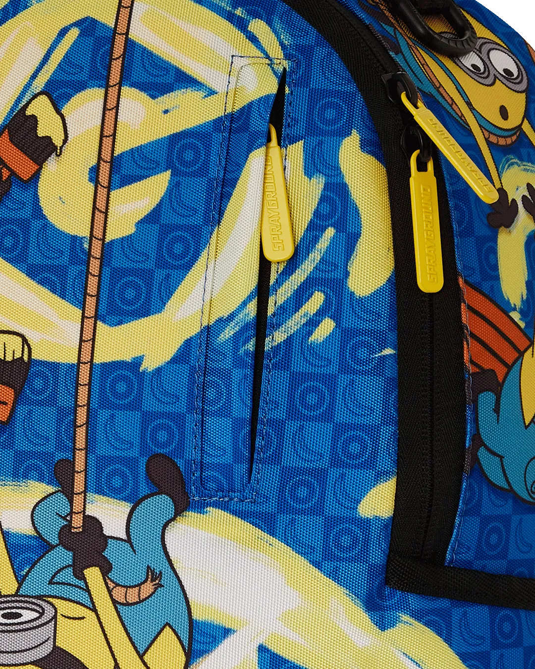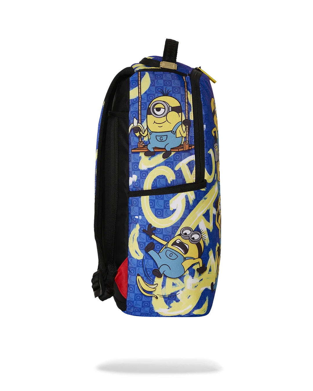 Dimensions: 18″ x 6″ x 11.5″ ? Front zipper pocket ? Side pockets ? Zippered Stash pocket ? Separate velour sunglass compartment ? Ergonomic mesh back padding ? Adjustable Straps for custom sizing ? Gold zippers with metal hardware ? Metal “Sprayground Authentic” badge ? Slide through back sleeve connects to carry-on luggage to free your hands