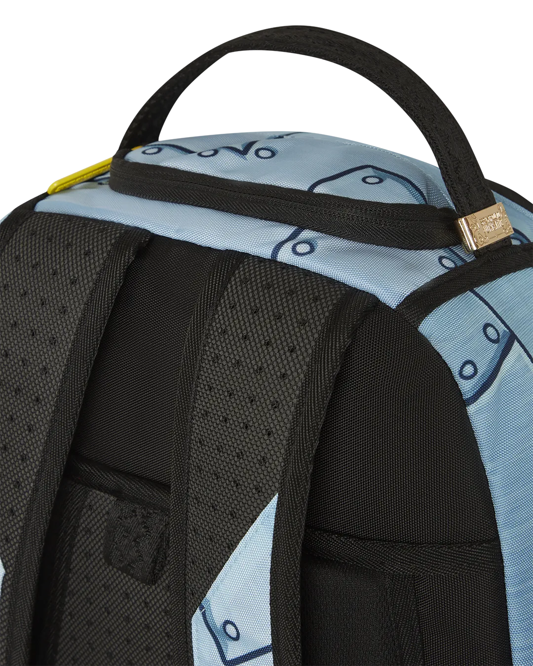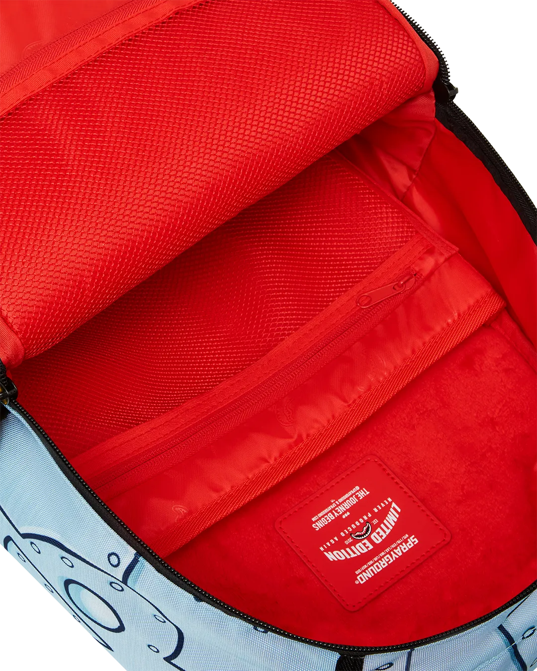 Dimensions: 18″ x 6″ x 11.5″ ? Front zipper pocket ? Side pockets ? Zippered Stash pocket ? Separate velour sunglass compartment ? Ergonomic mesh back padding ? Adjustable Straps for custom sizing ? Gold zippers with metal hardware ? Metal “Sprayground Authentic” badge ? Slide through back sleeve connects to carry-on luggage to free your hands