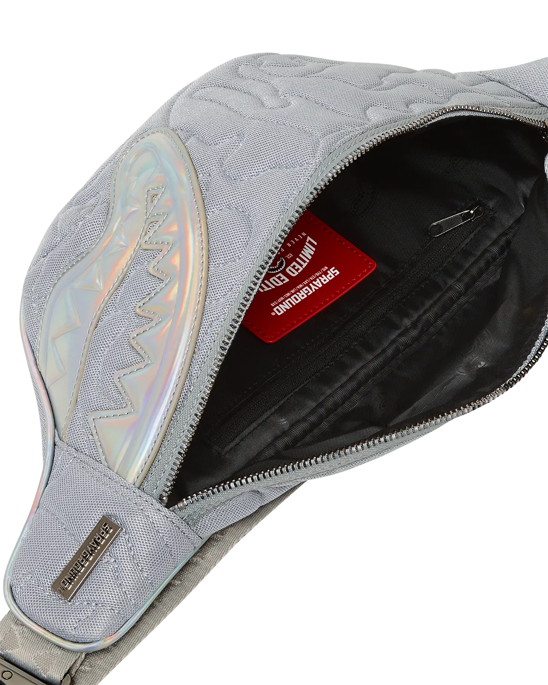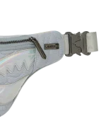 The styles are trimmed with matching faux leather trims and accented with iridescent welded shark mouths and gunmetal hardware.