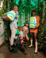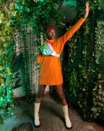 Faux leather printed in a brightly colored custom bandana pattern. ?