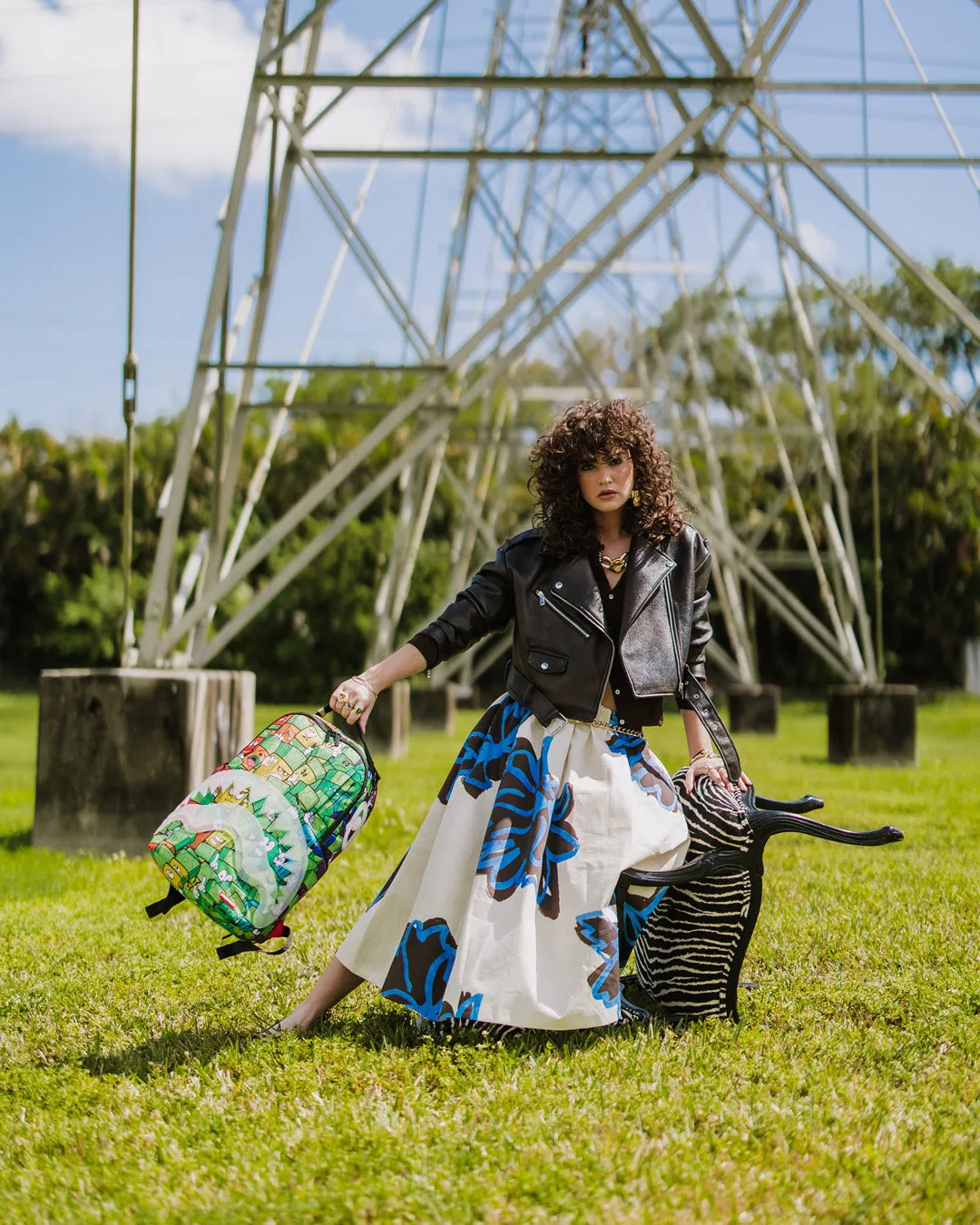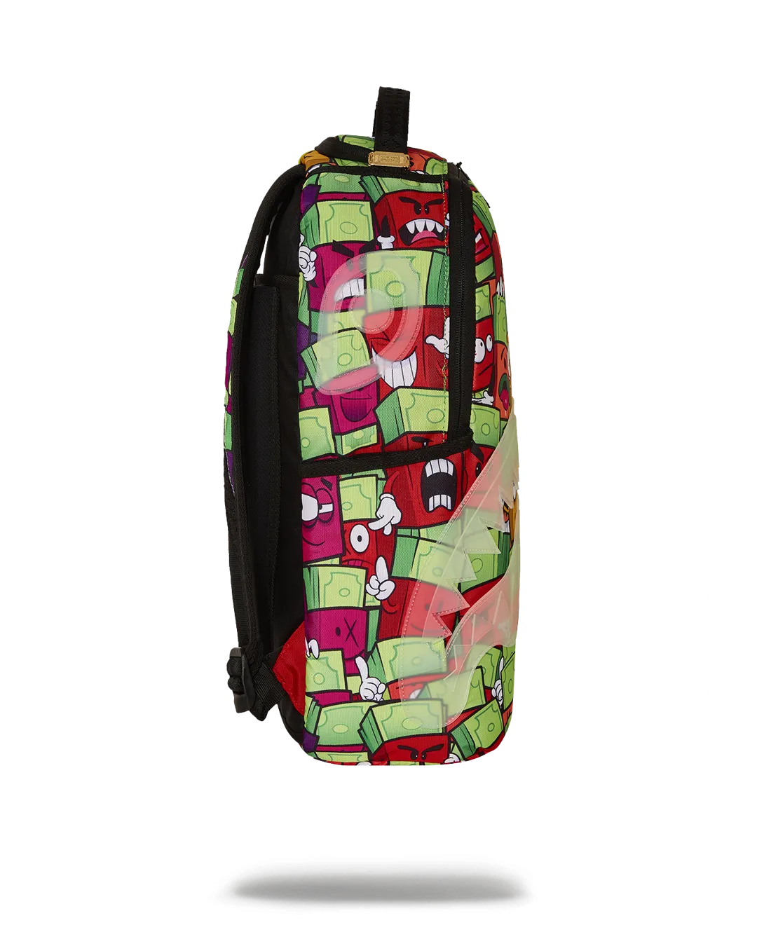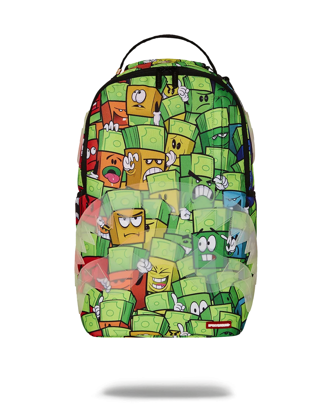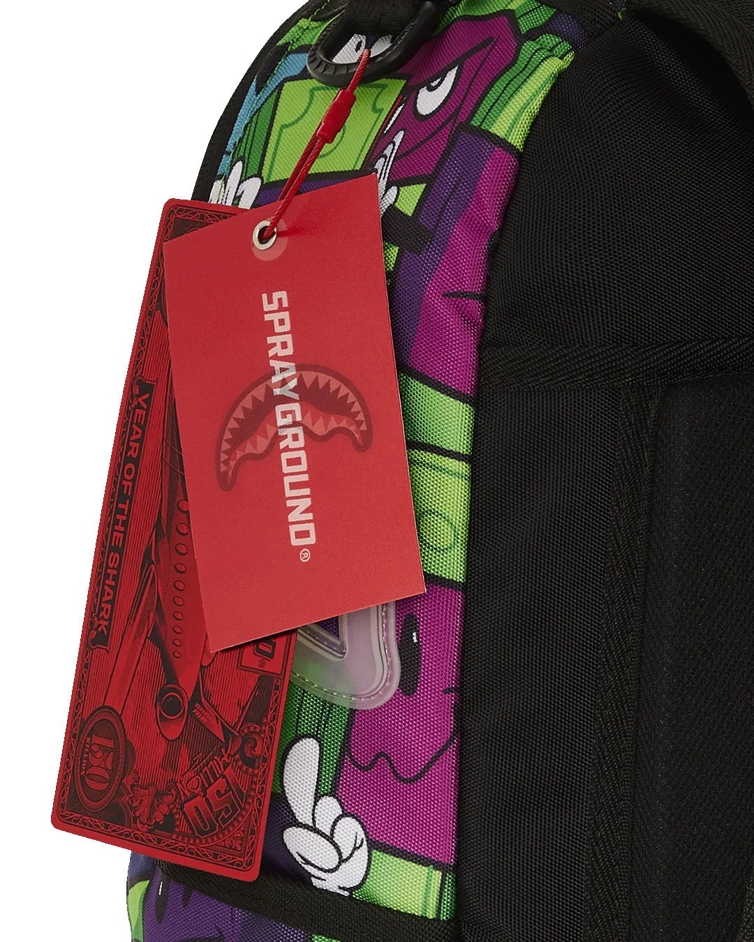 Dimensions: 18″ x 6″ x 11.5″ ? Front zipper pocket ? Side pockets ? Zippered Stash pocket ? Separate velour sunglass compartment ? Ergonomic mesh back padding ? Adjustable Straps for custom sizing ? Gold zippers with metal hardware ? Metal “Sprayground Authentic” badge ? Slide through back sleeve connects to carry-on luggage to free your hands