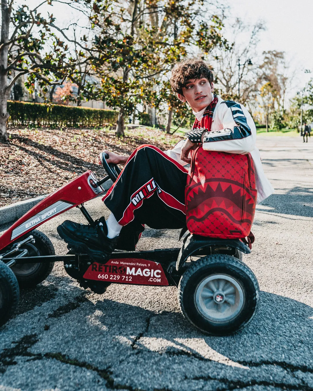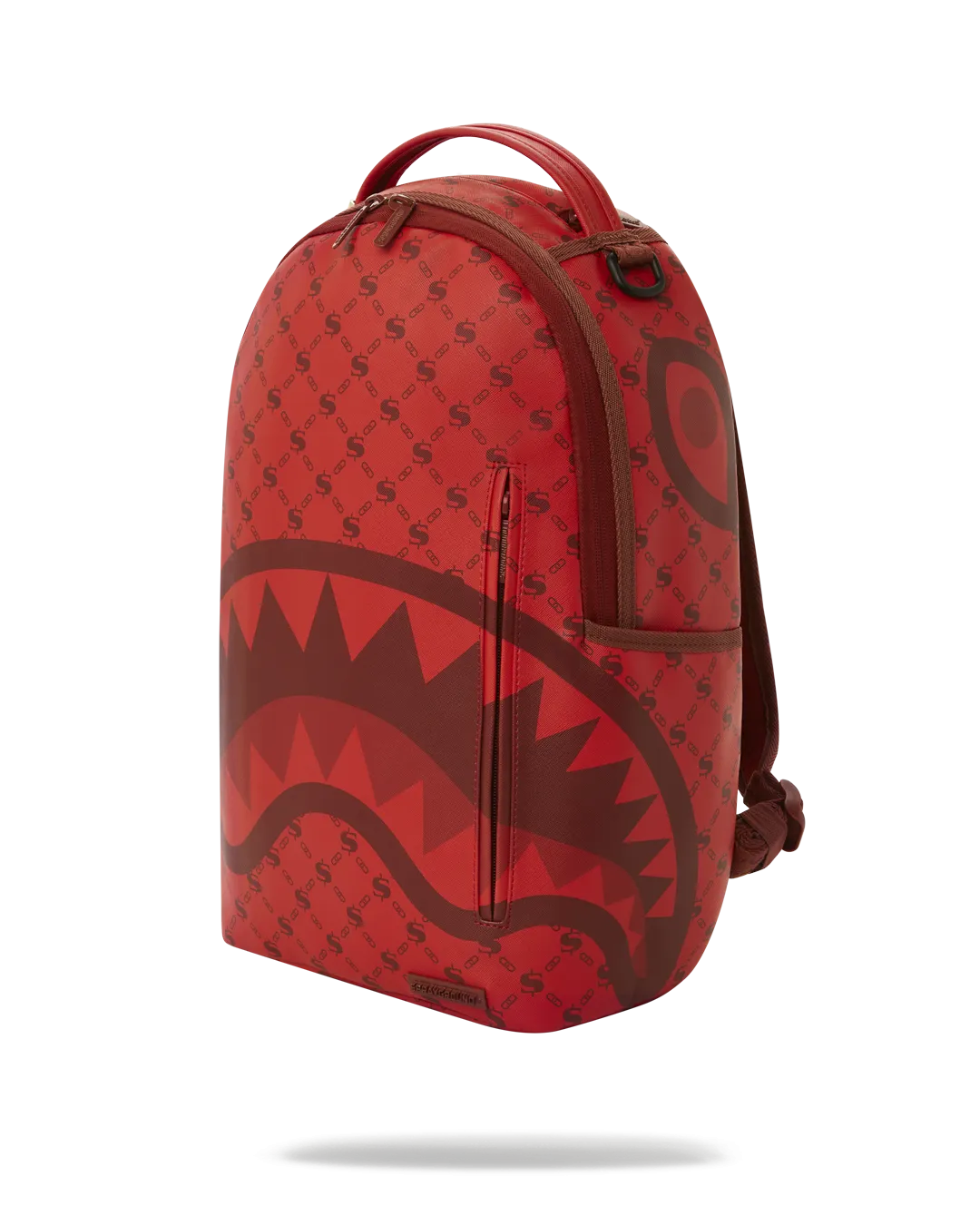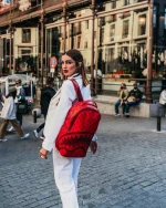 Dimensions: 18″ x 6″ x 11.5″ ? Front zipper pocket ? Side pockets ? Zippered Stash pocket ? Separate velour sunglass compartment ? Ergonomic mesh back padding ? Adjustable Straps for custom sizing ? Red zippers with metal hardware ? Metal “Sprayground Authentic” badge ? Slide through back sleeve connects to carry-on luggage to free your hands
