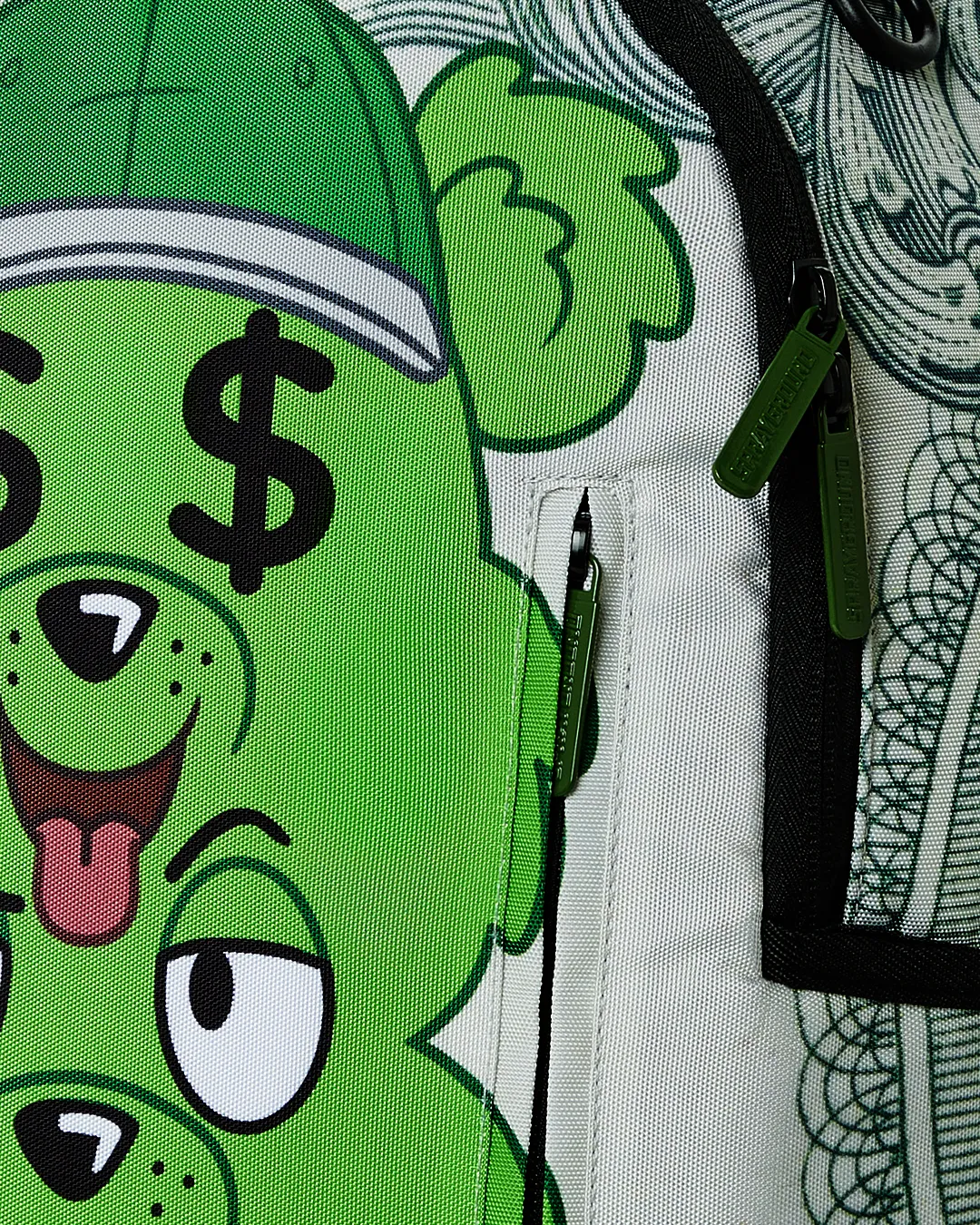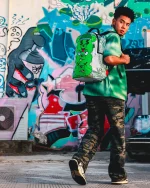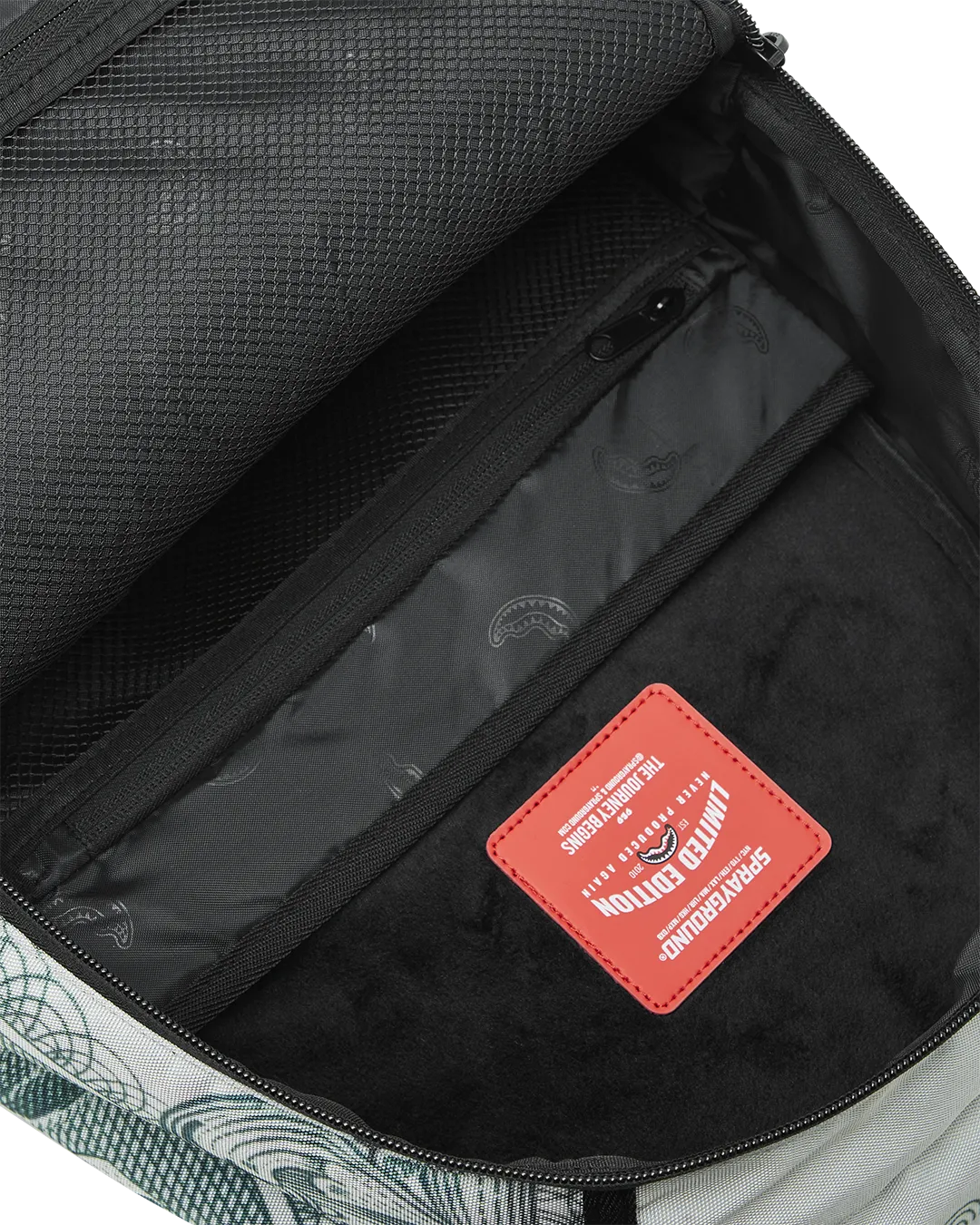 Dimensions: 18″ x 6″ x 11.5″ ? Front zipper pocket ? Side pockets ? Zippered Stash pocket ? Separate velour sunglass compartment ? Ergonomic mesh back padding ? Adjustable Straps for custom sizing ? Gold zippers with metal hardware ? Metal “Sprayground Authentic” badge ? Slide through back sleeve connects to carry-on luggage to free your hands