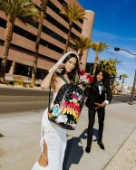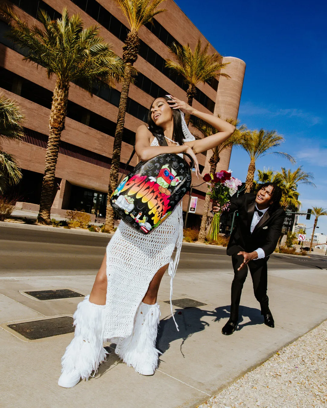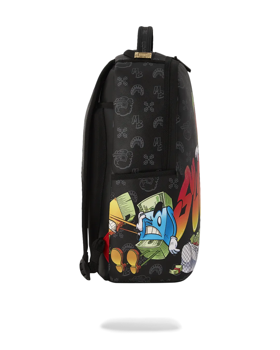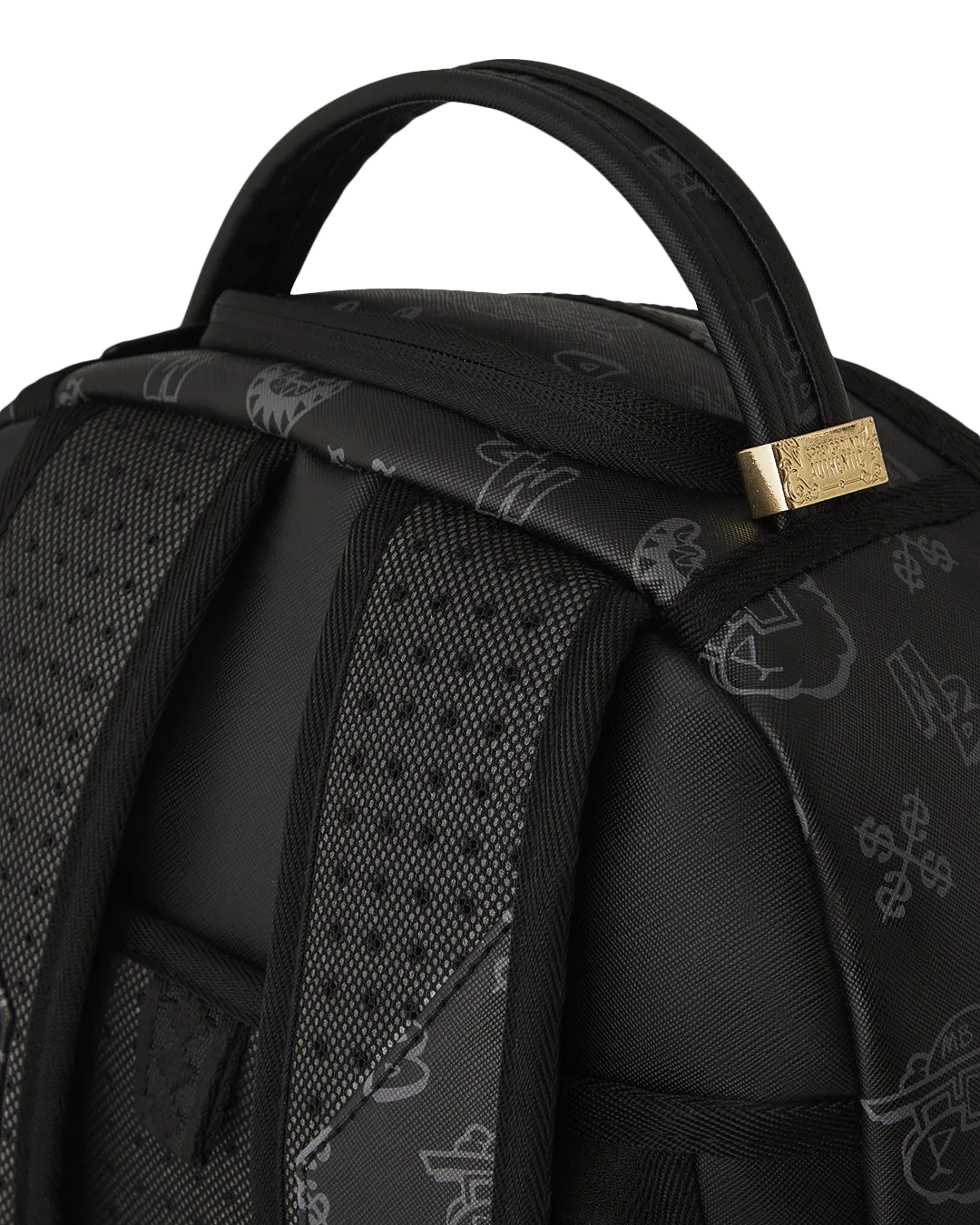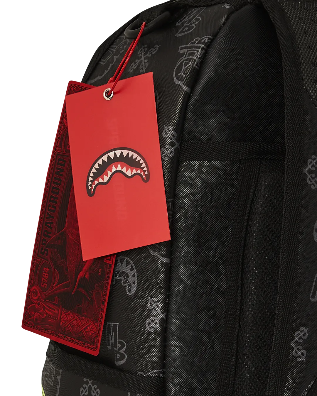 Dimensions: 18″ x 6″ x 11.5″ ? Front zipper pocket ? Side pockets ? Zippered Stash pocket ? Separate velour sunglass compartment ? Ergonomic mesh back padding ? Adjustable Straps for custom sizing ? Gold zippers with metal hardware ? Metal “Sprayground Authentic” badge ? Slide through back sleeve connects to carry-on luggage to free your hands