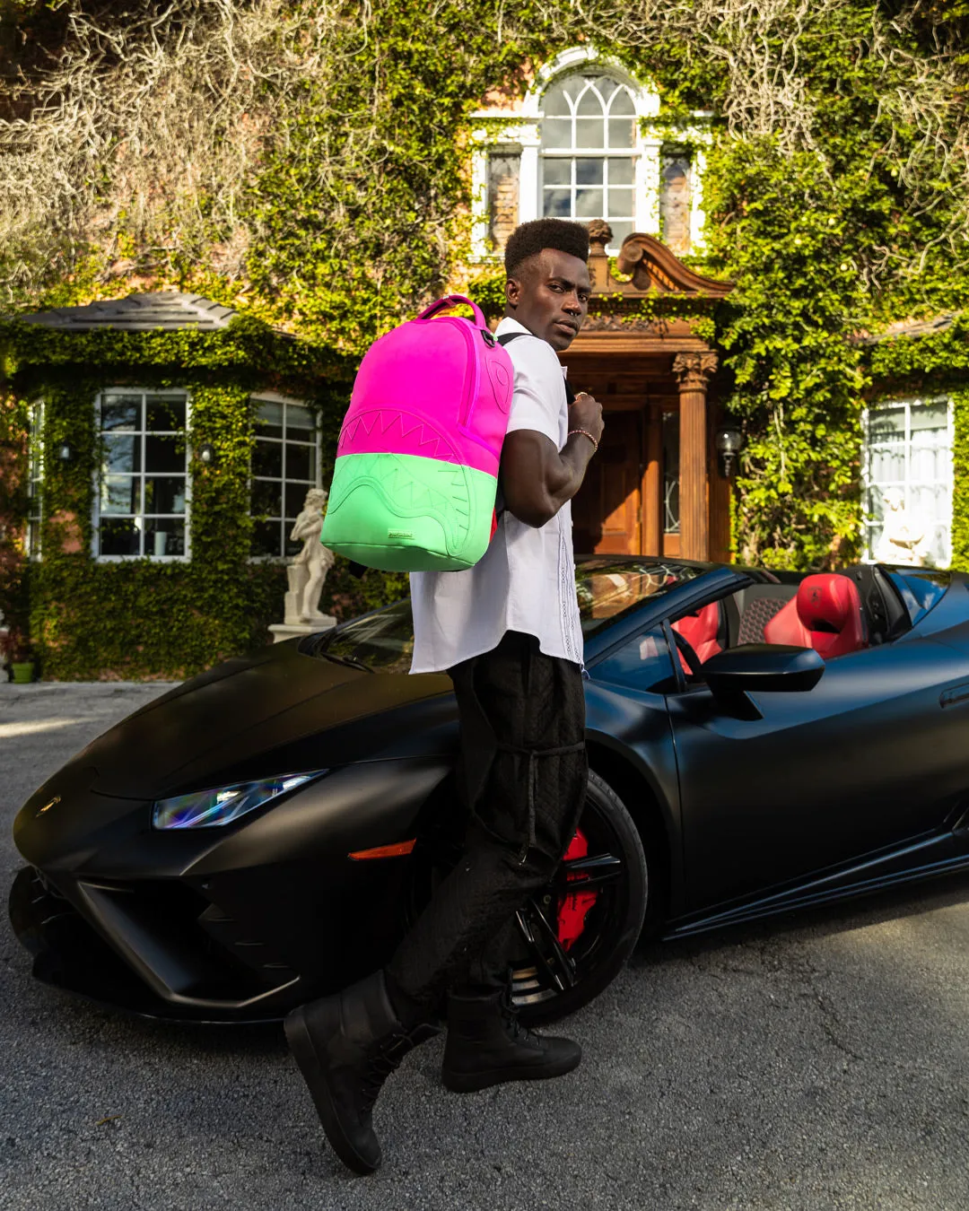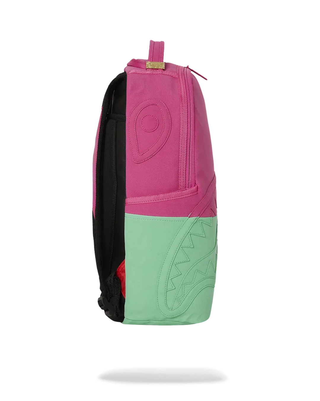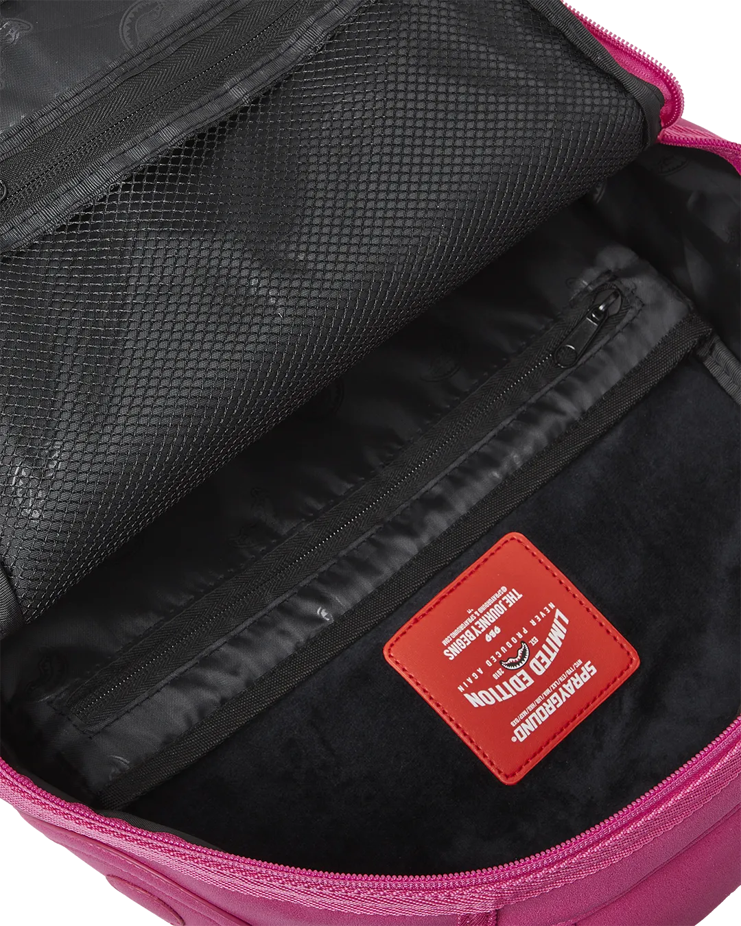 Dimensions: 18″ x 6″ x 11.5″ ? Front zipper pocket ? Side pockets ? Zippered Stash pocket ? Separate velour sunglass compartment ? Ergonomic mesh back padding ? Adjustable Straps for custom sizing ? Gold zippers with metal hardware ? Metal “Sprayground Authentic” badge ? Slide through back sleeve connects to carry-on luggage to free your hands