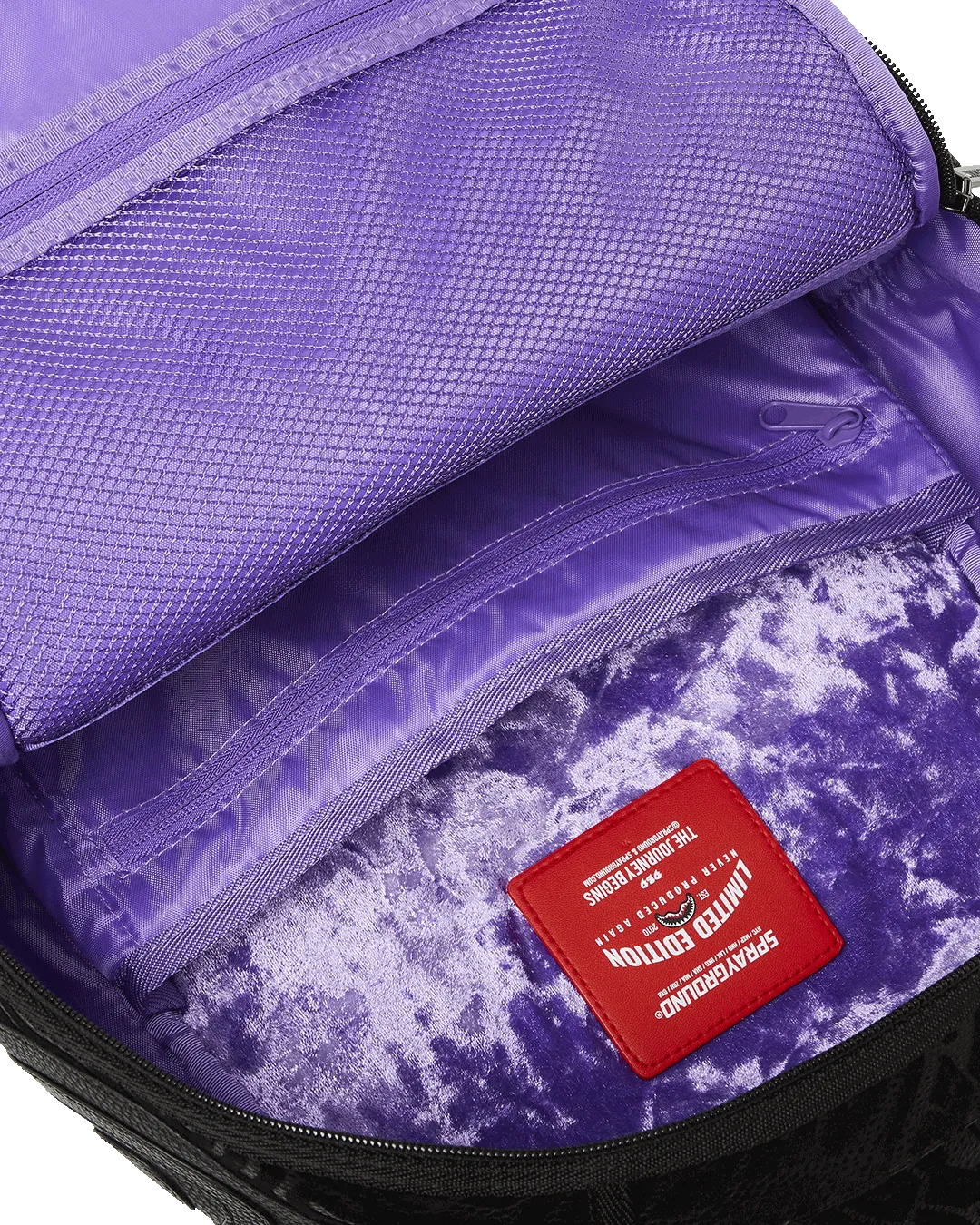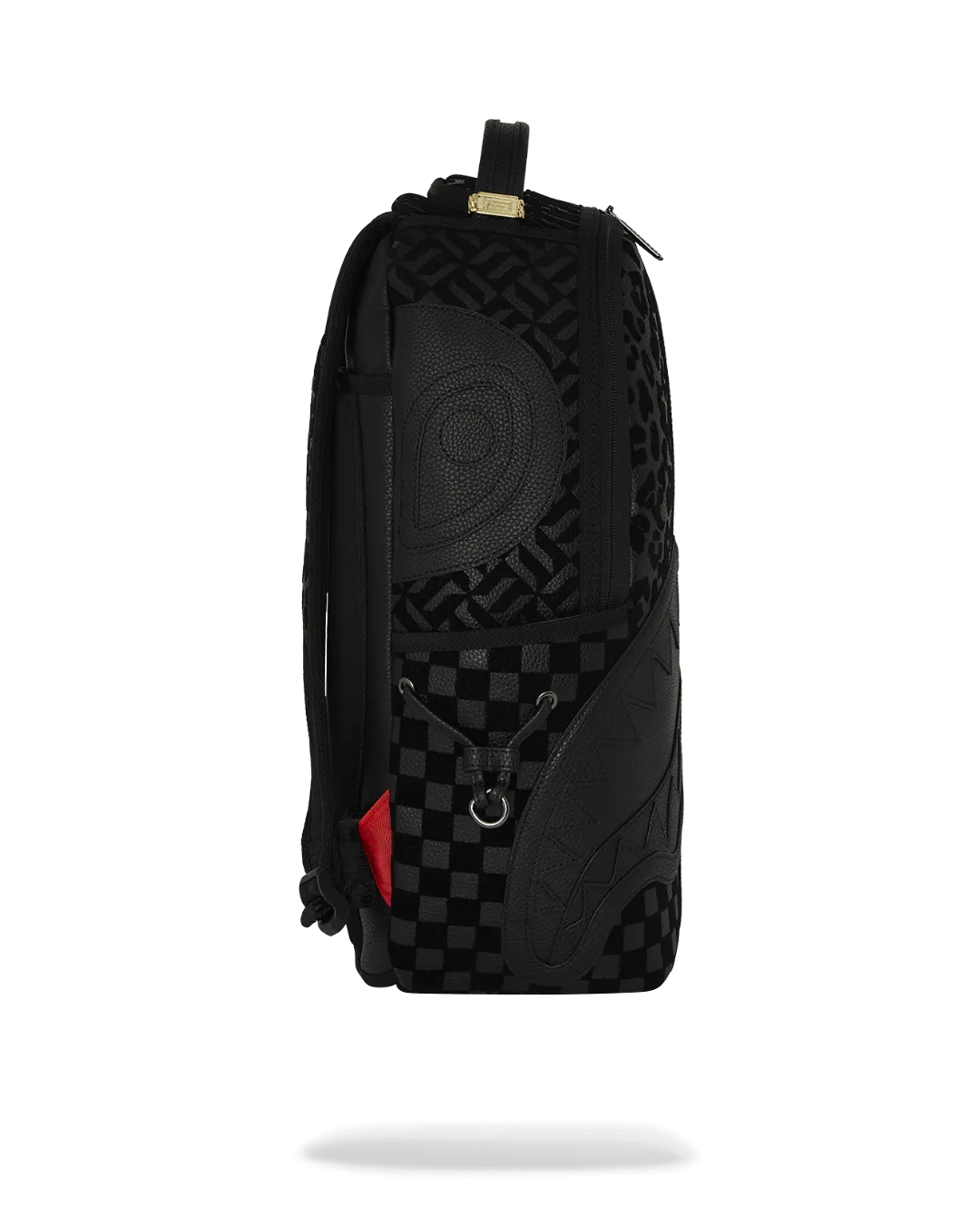 Dimensions: 18″ x 6″ x 11.5″ ? Front zipper pocket ? Side pockets ? Zippered Stash pocket ? Separate velour sunglass compartment ? Ergonomic mesh back padding ? Adjustable Straps for custom sizing ? Gold zippers with metal hardware ? Metal “Sprayground Authentic” badge ? Slide through back sleeve connects to carry-on luggage to free your hands