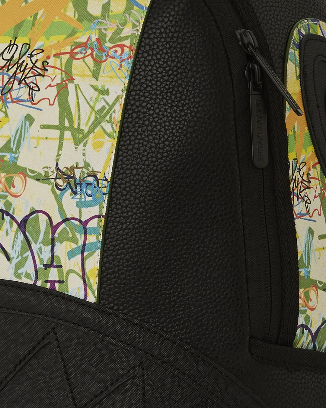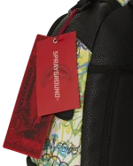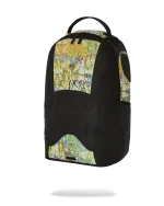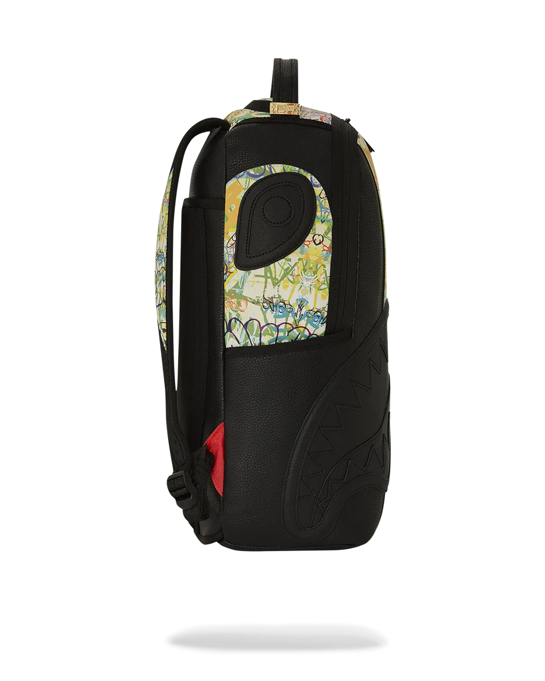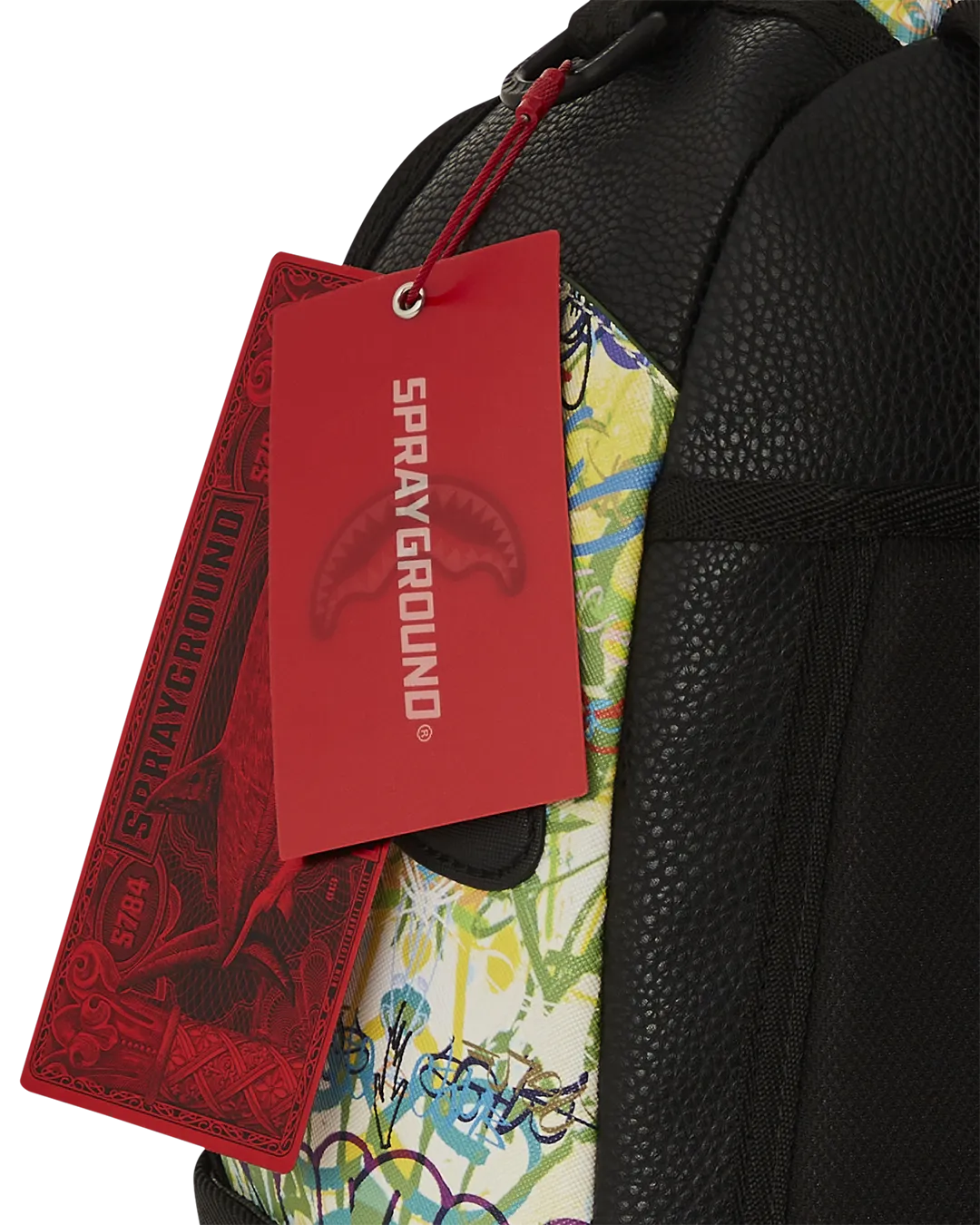Dimensions: 18″ x 6″ x 11.5″ ? Front zipper pocket ? Side pockets ? Zippered Stash pocket ? Separate velour sunglass compartment ? Ergonomic mesh back padding ? Adjustable Straps for custom sizing ? Gold zippers with metal hardware ? Metal “Sprayground Authentic” badge ? Slide through back sleeve connects to carry-on luggage to free your hands