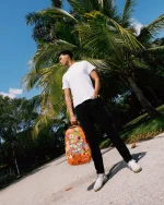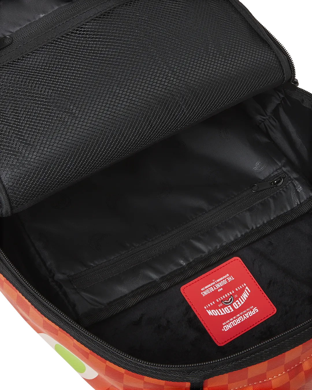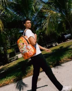 Dimensions: 18″ x 6″ x 11.5″ ? Front zipper pocket ? Side pockets ? Zippered Stash pocket ? Separate velour sunglass compartment ? Ergonomic mesh back padding ? Adjustable Straps for custom sizing ? Gold zippers with metal hardware ? Metal “Sprayground Authentic” badge ? Slide through back sleeve connects to carry-on luggage to free your hands