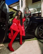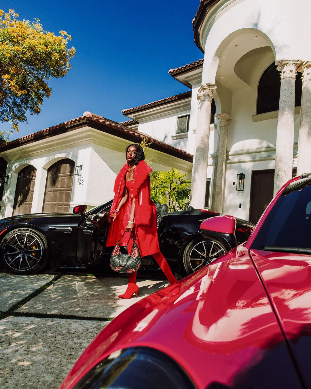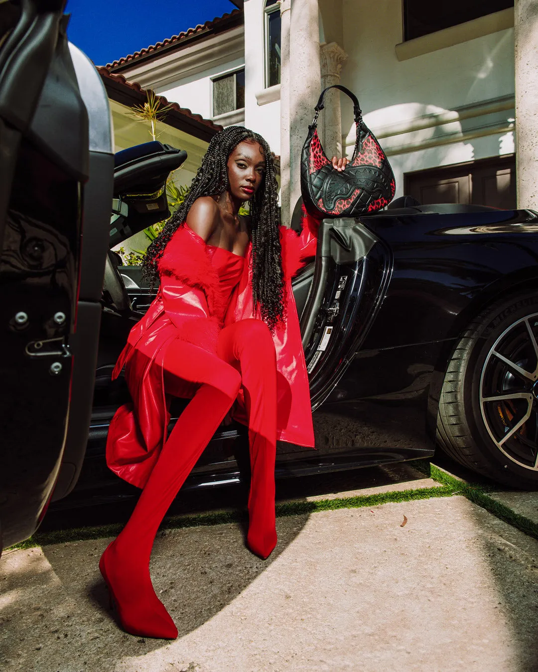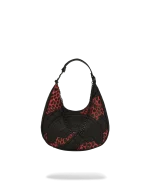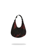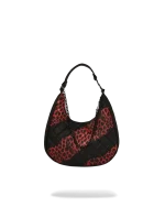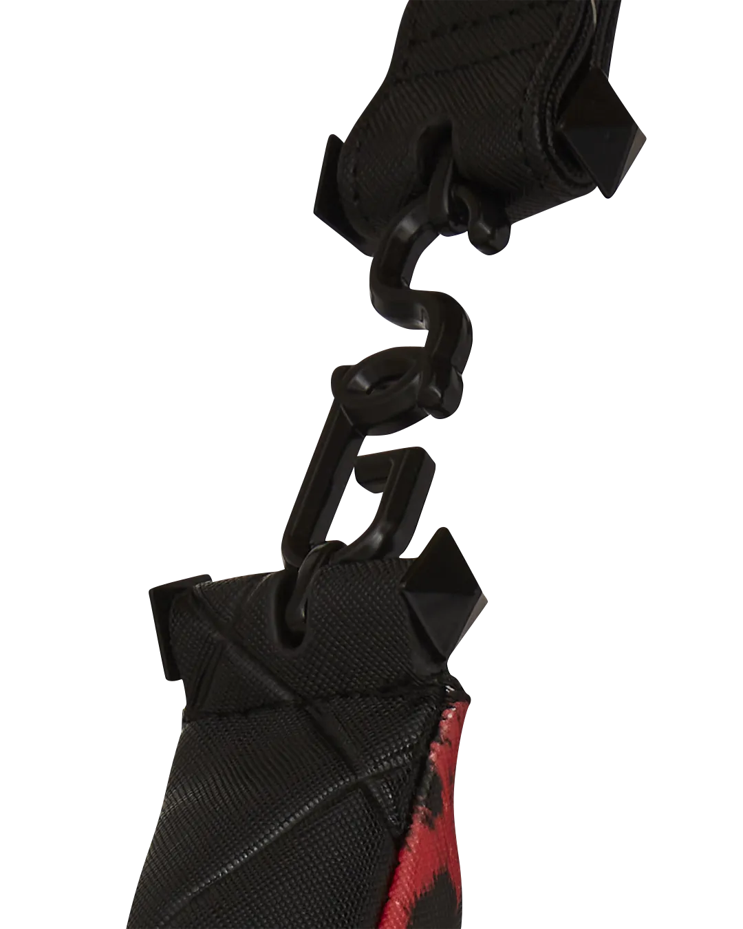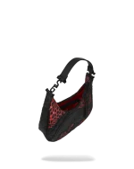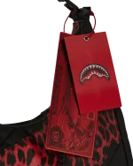 Quilted handbag with cut and sew leopard tear, an embossed sharkmouth, and a chained zipper puller.