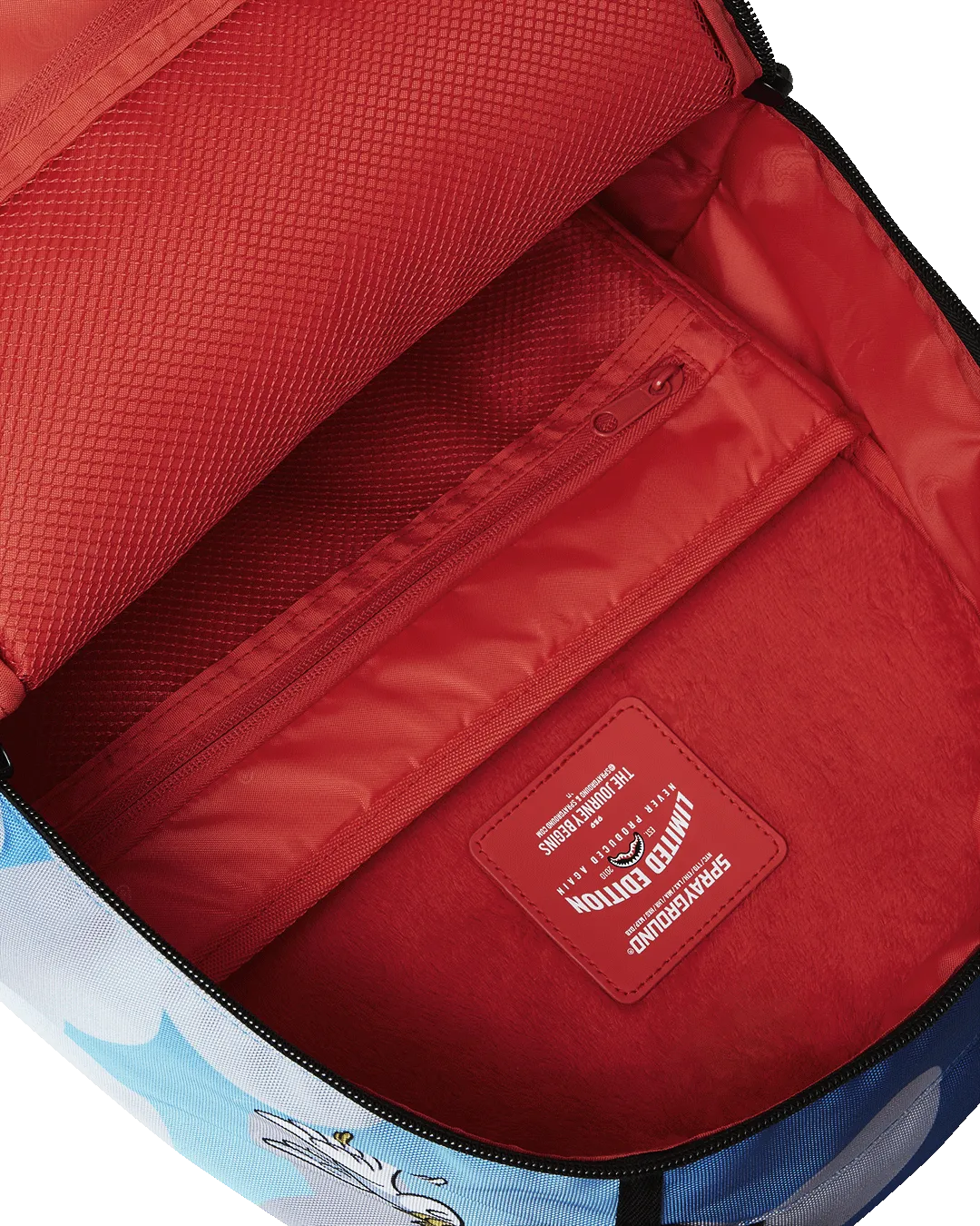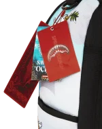 Dimensions: 18″ x 6″ x 11.5″ ? Front zipper pocket ? Side pockets ? Zippered Stash pocket ? Separate velour sunglass compartment ? Ergonomic mesh back padding ? Adjustable Straps for custom sizing ? Gold zippers with metal hardware ? Metal “Sprayground Authentic” badge ? Slide through back sleeve connects to carry-on luggage to free your hands