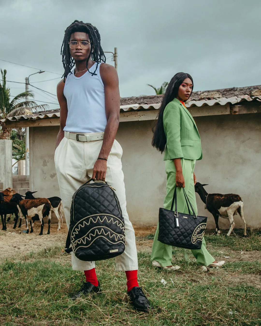 NOIR QUILT GOLD CHAIN SHARK BACKPACK (DLXV)