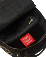 Dimensions: 18″ x 6″ x 11.5″ ? Front zipper pocket ? Side pockets ? Zippered Stash pocket ? Separate velour sunglass compartment ? Ergonomic mesh back padding ? Adjustable Straps for custom sizing ? Gold zippers with metal hardware ? Metal “Sprayground Authentic” badge ? Slide through back sleeve connects to carry-on luggage to free your hands
