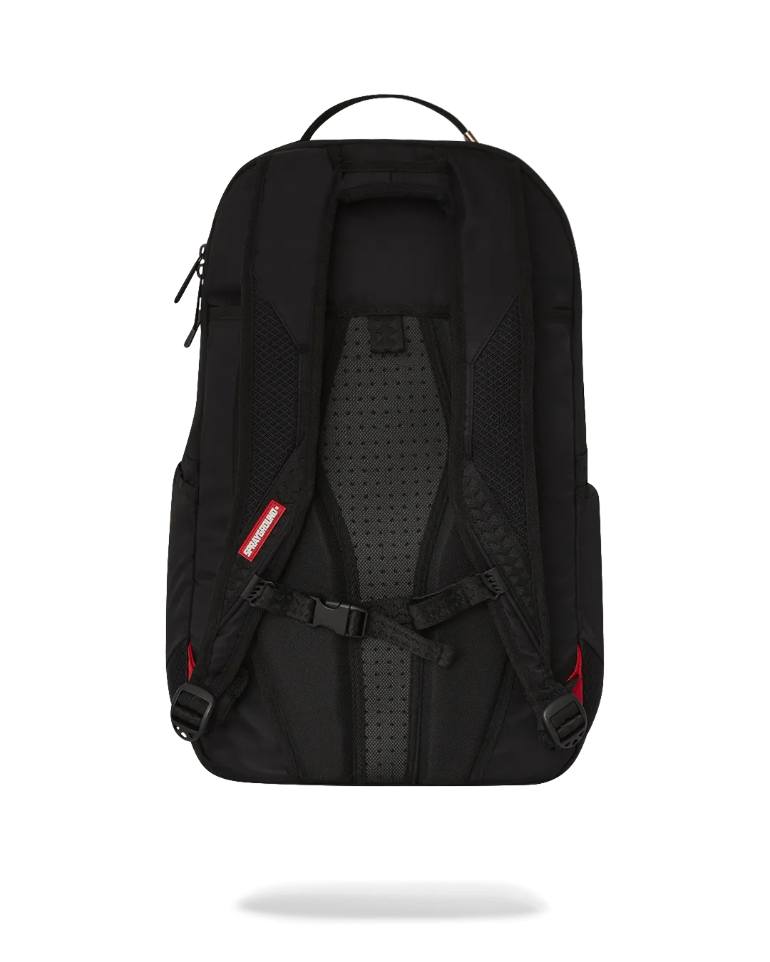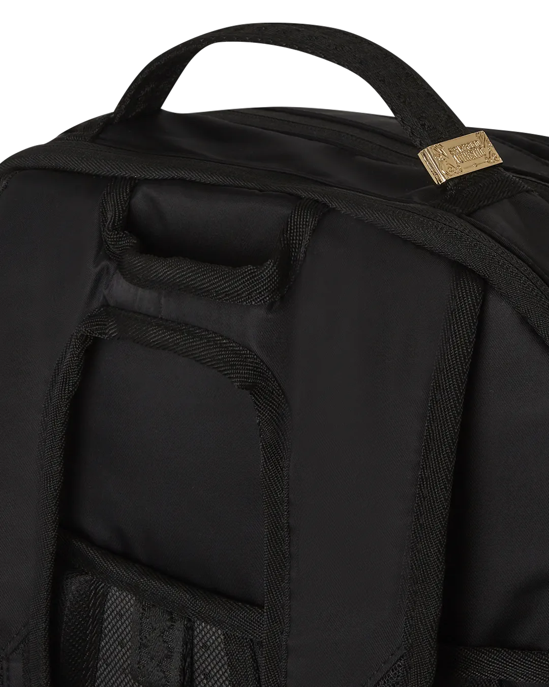 Dimensions: 18″ x 6″ x 11.5″ ? Front zipper pocket ? Side pockets ? Zippered Stash pocket ? Separate velour sunglass compartment ? Ergonomic mesh back padding ? Adjustable Straps for custom sizing ? Gold zippers with metal hardware ? Metal “Sprayground Authentic” badge ? Slide through back sleeve connects to carry-on luggage to free your hands