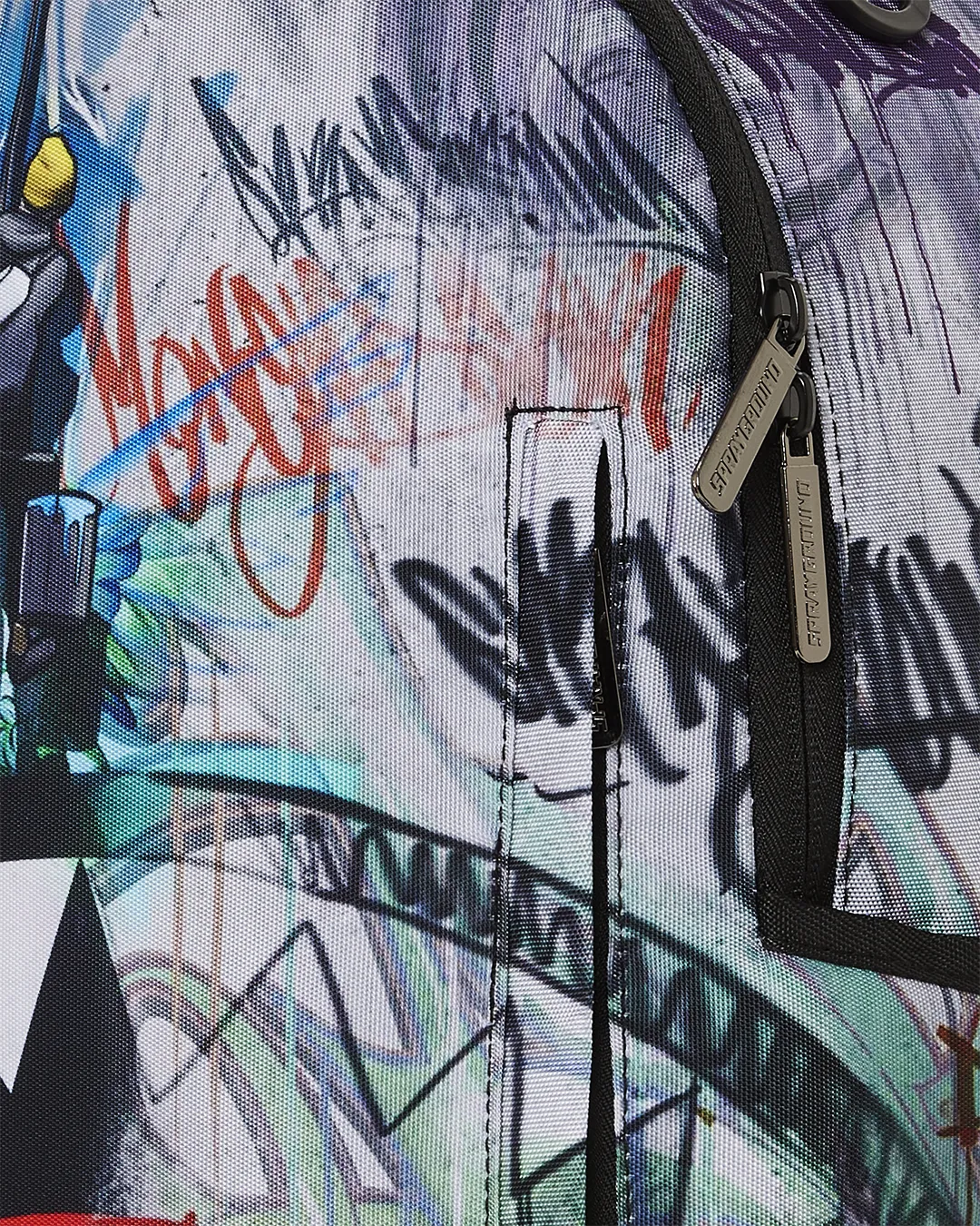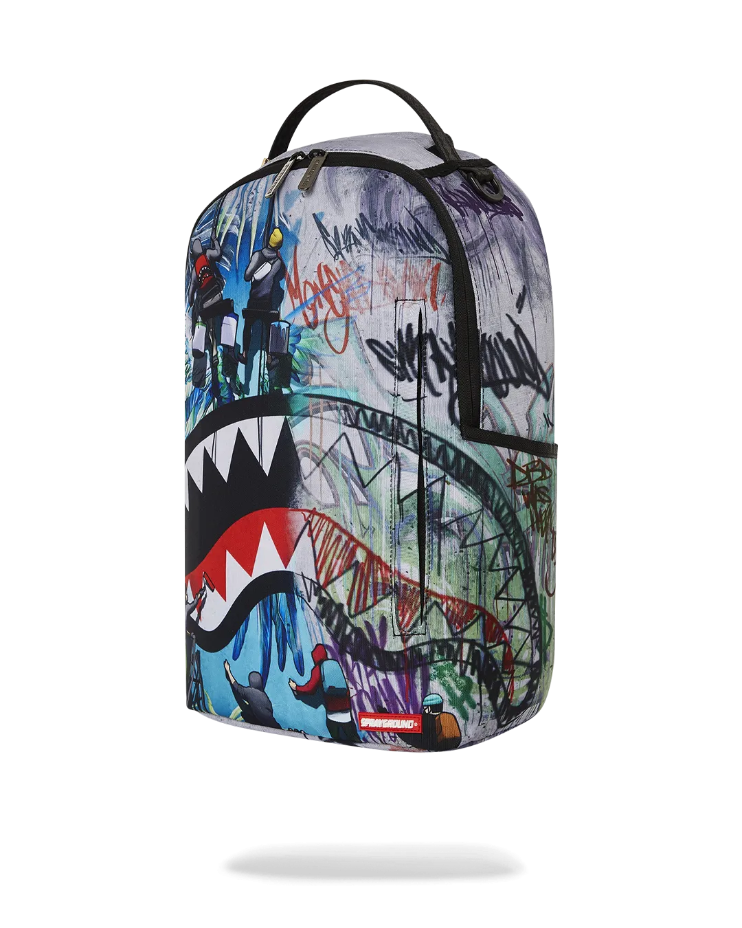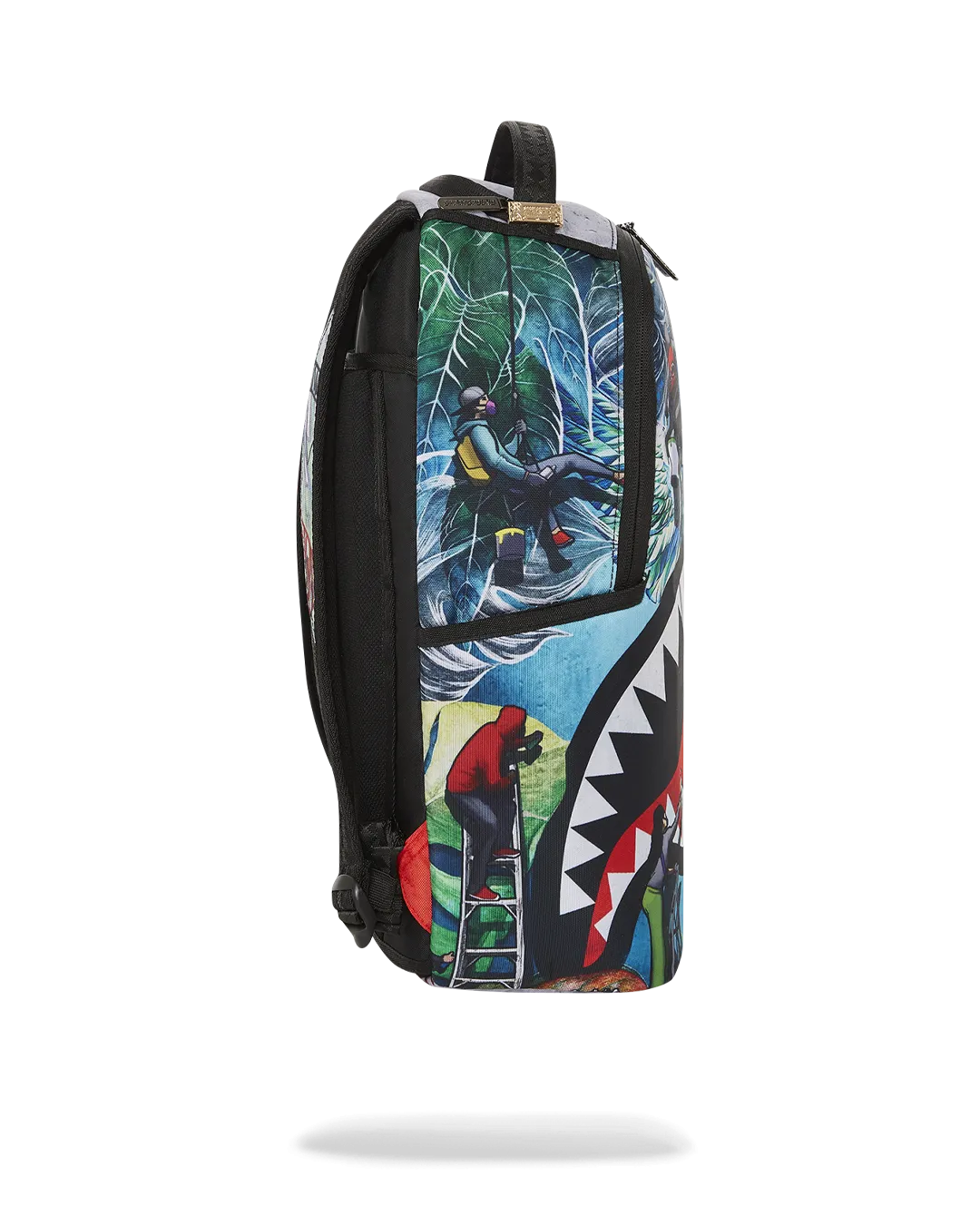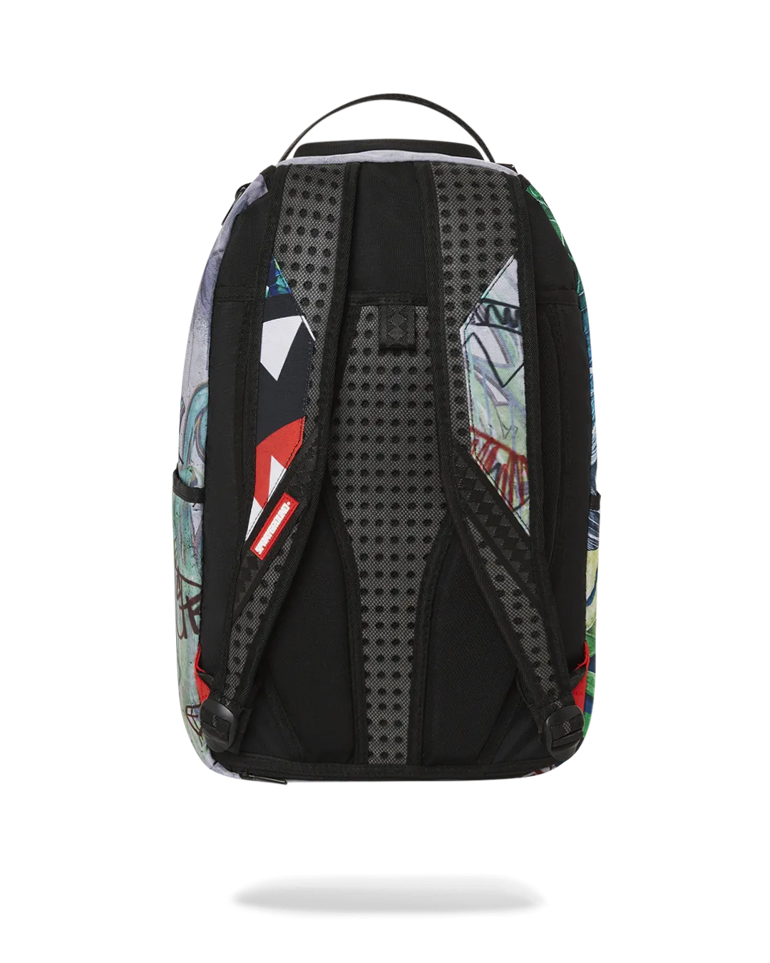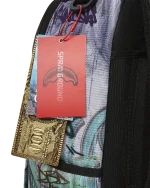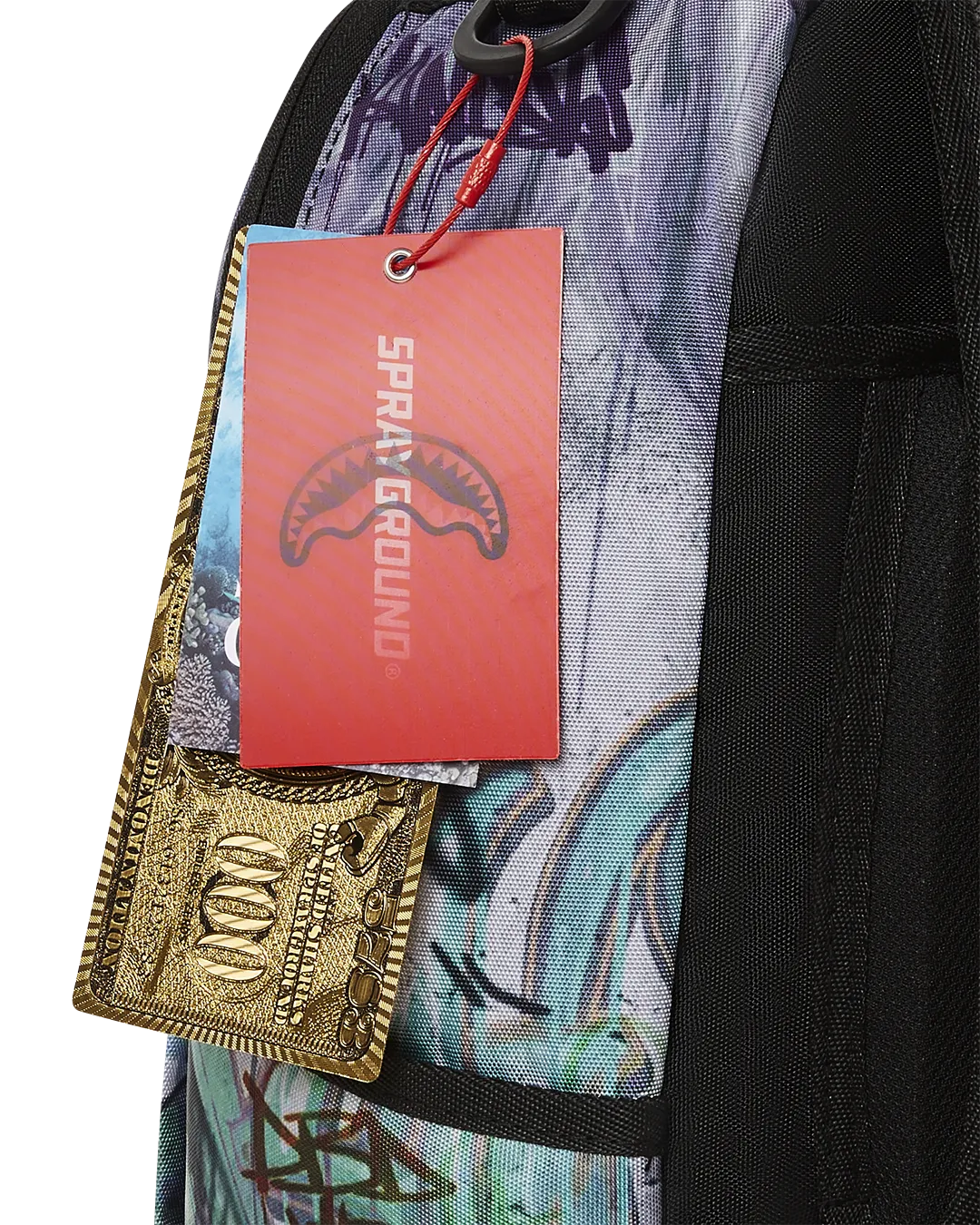 Dimensions: 18″ x 6″ x 11.5″ ? Front zipper pocket ? Side pockets ? Zippered Stash pocket ? Separate velour sunglass compartment ? Ergonomic mesh back padding ? Adjustable Straps for custom sizing ? Gold zippers with metal hardware ? Metal “Sprayground Authentic” badge ? Slide through back sleeve connects to carry-on luggage to free your hands