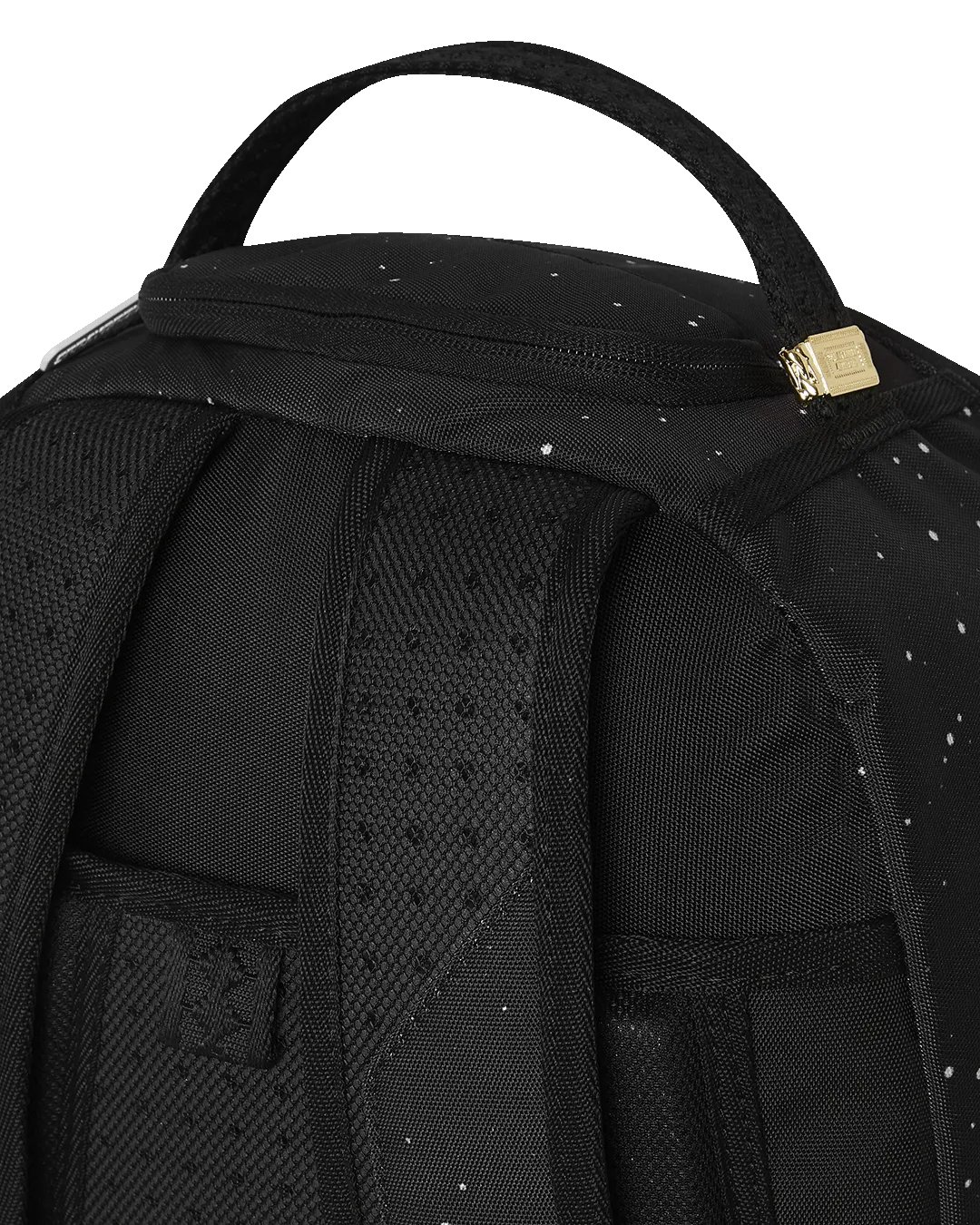 Dimensions: 18″ x 6″ x 11.5″ ? Front zipper pocket ? Side pockets ? Zippered Stash pocket ? Separate velour sunglass compartment ? Ergonomic mesh back padding ? Adjustable Straps for custom sizing ? Gold zippers with metal hardware ? Metal “Sprayground Authentic” badge ? Slide through back sleeve connects to carry-on luggage to free your hands