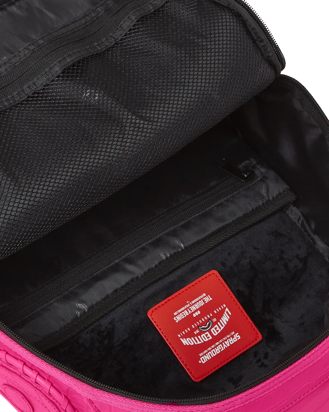 Dimensions: 18″ x 6″ x 11.5″ ? Front zipper pocket ? Side pockets ? Zippered Stash pocket ? Separate velour sunglass compartment ? Ergonomic mesh back padding ? Adjustable Straps for custom sizing ? Gold zippers with metal hardware ? Metal “Sprayground Authentic” badge ? Slide through back sleeve connects to carry-on luggage to free your hands